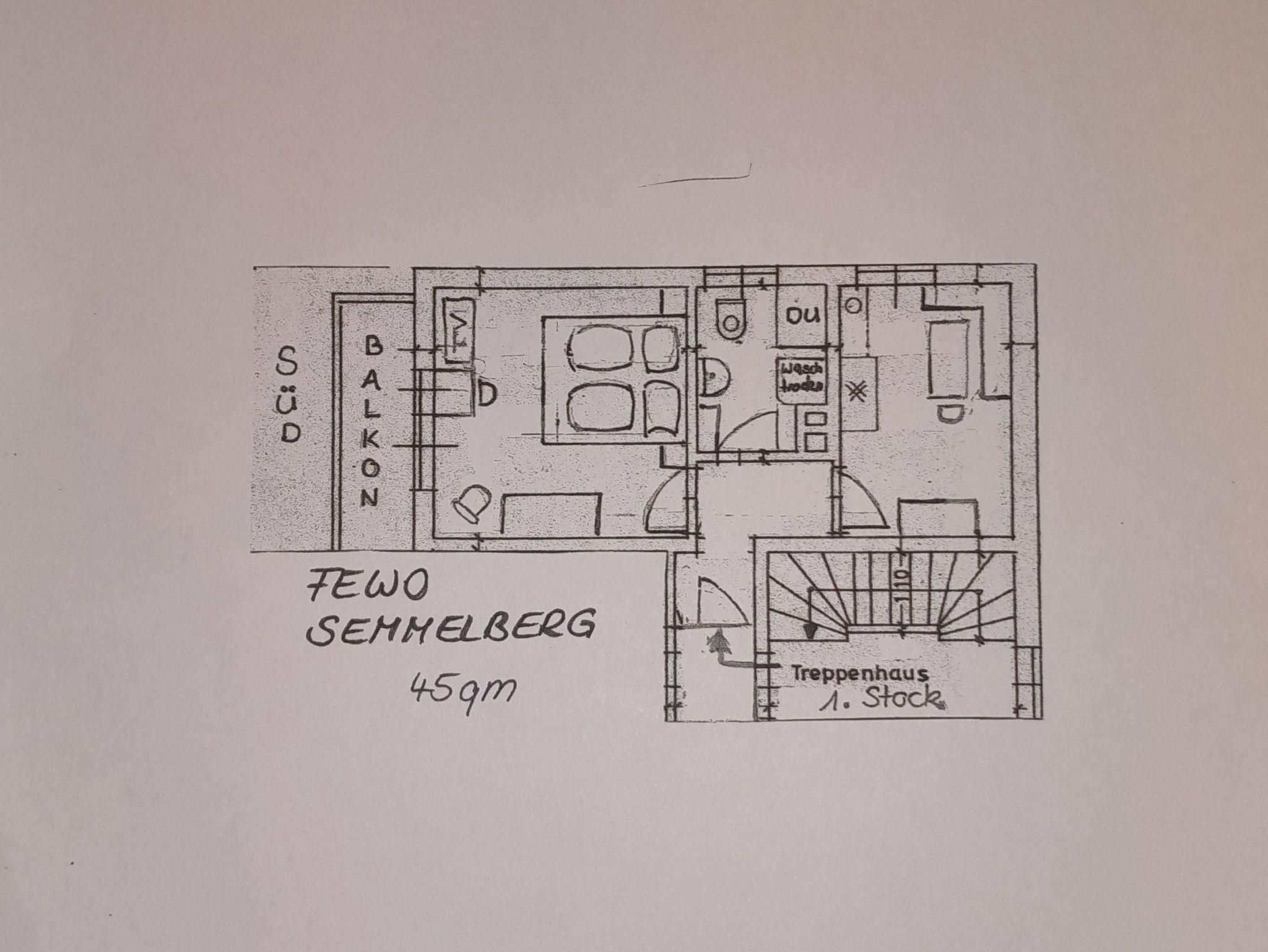 Unsere gemütliche Ferienwohnung „Semmelberg“ mit ca. 45 qm befindet