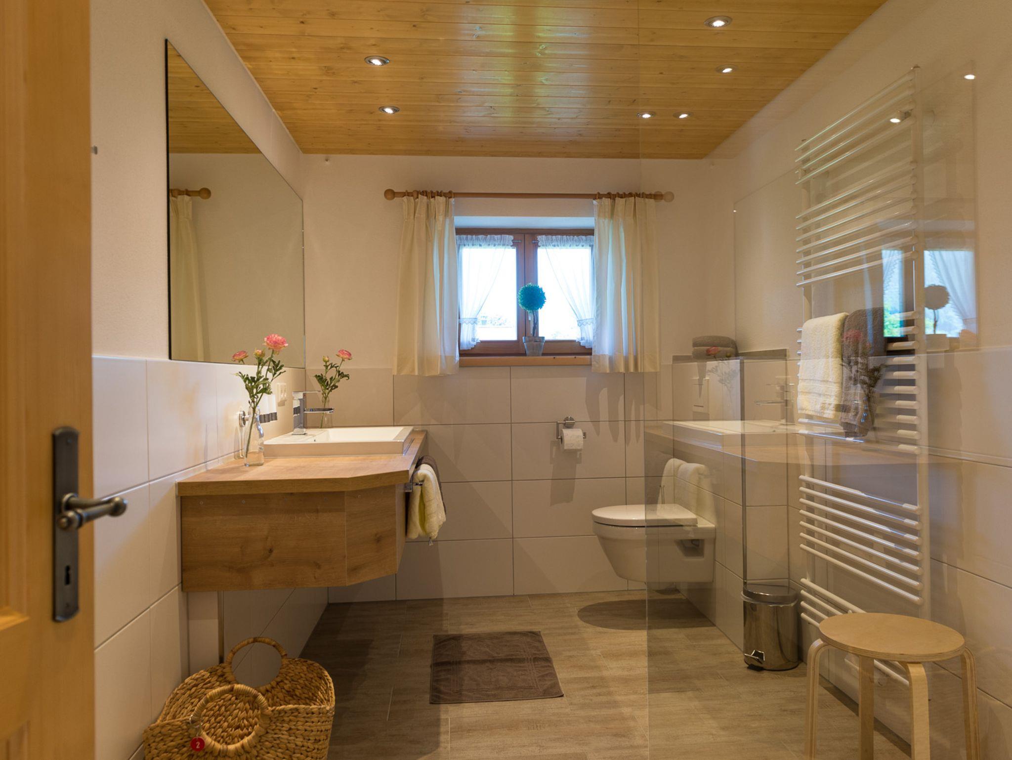 * Bad mit Dusche, Föhn und Kosmetikspiegel