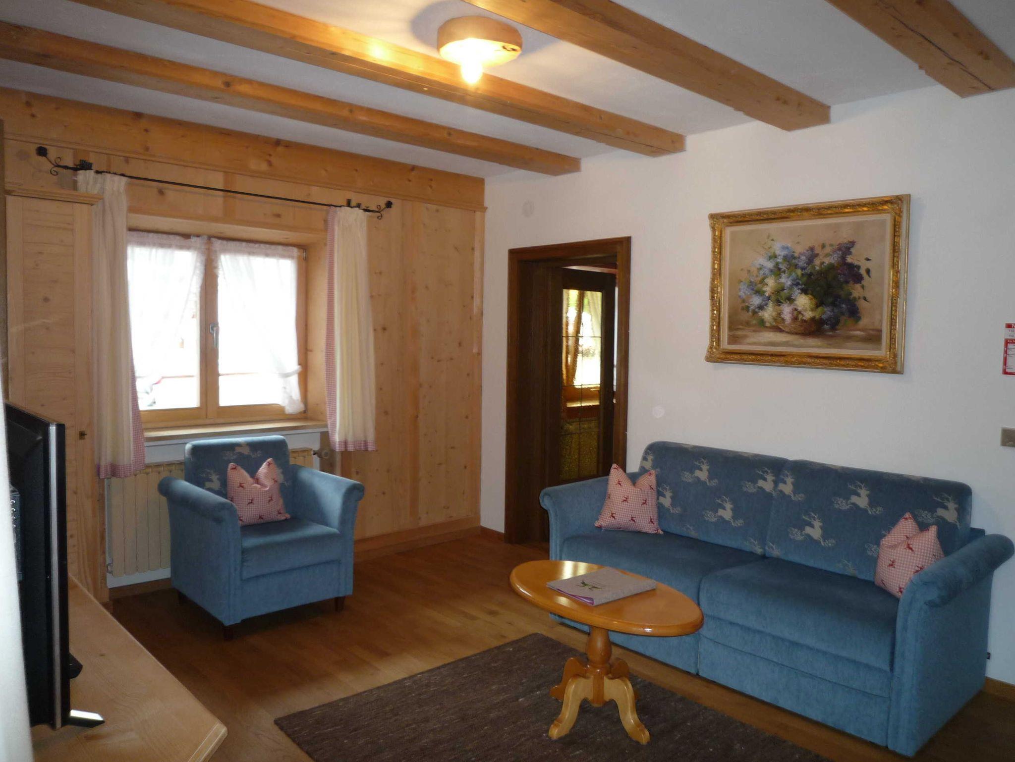 Wohnraum mit Auszugcouch, eingerichtet im bayrischen Stil.