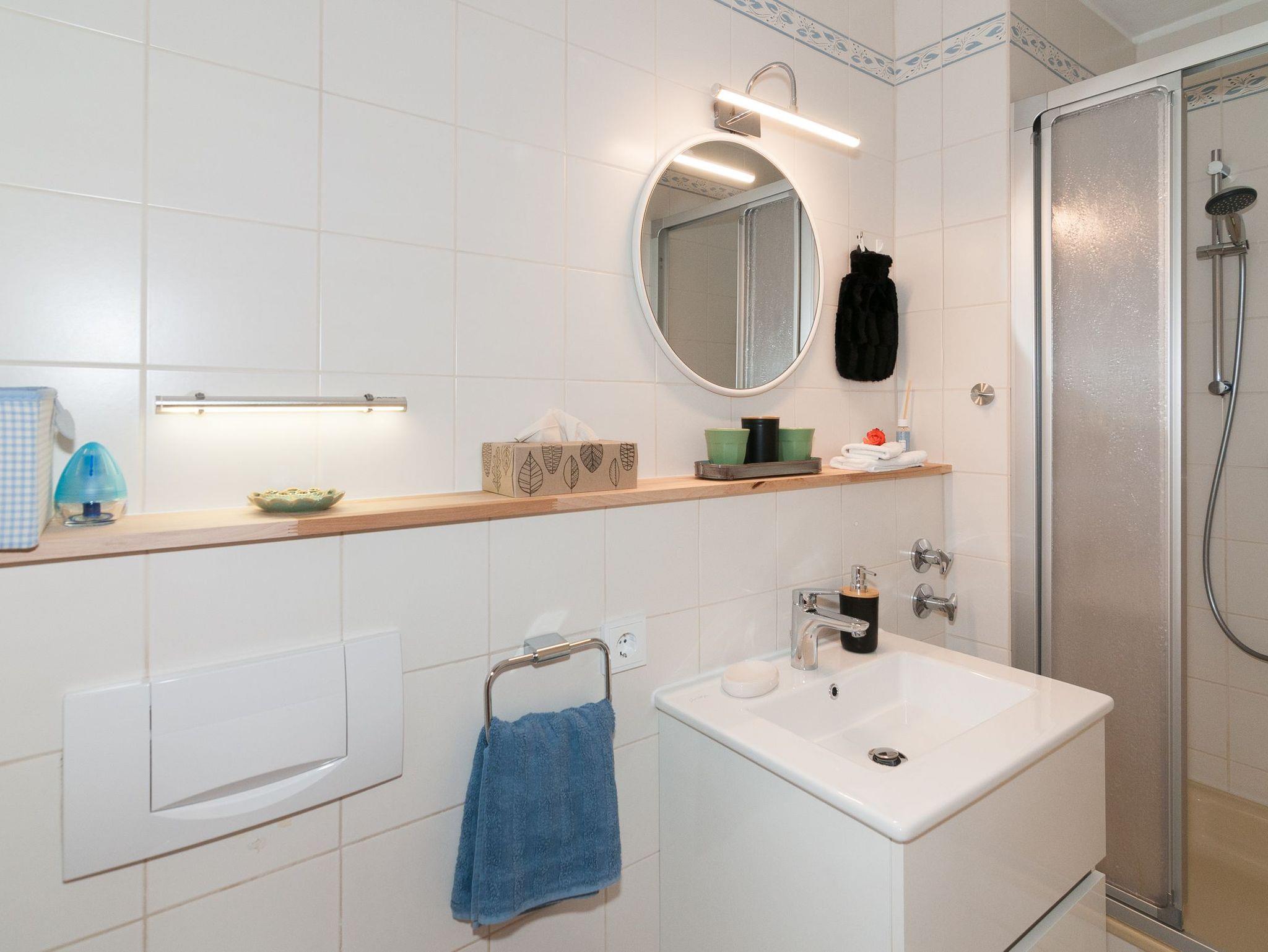 • Bad mit Waschtisch, Walk-in-Dusche, Haartrockner