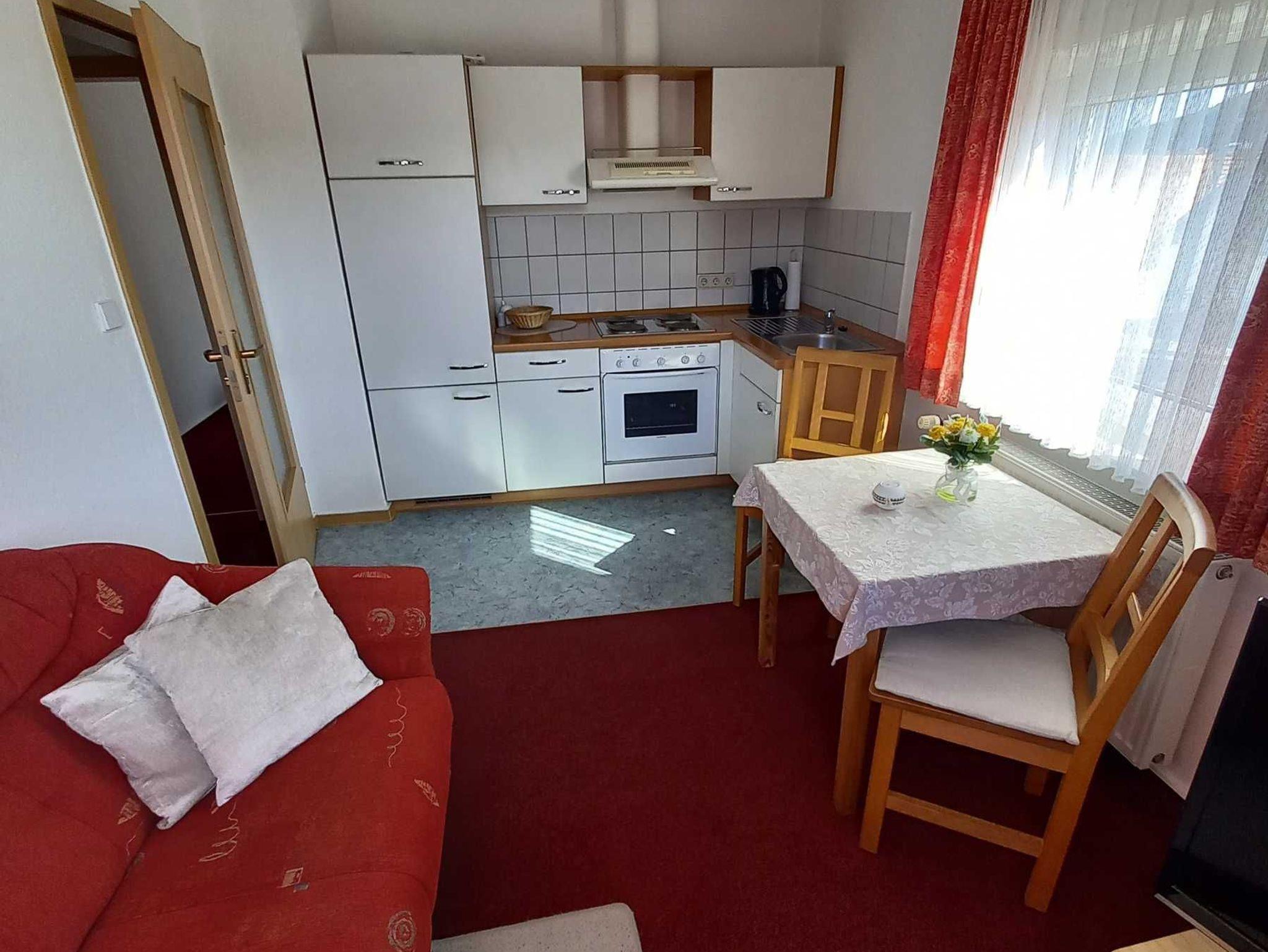 Das kleine Appartement (1 Zimmer) ist ebenfalls mit DU/WC, Fön, Doppelbett, Kabel-TV, WLAN und Pantry-Küche eingerichtet.