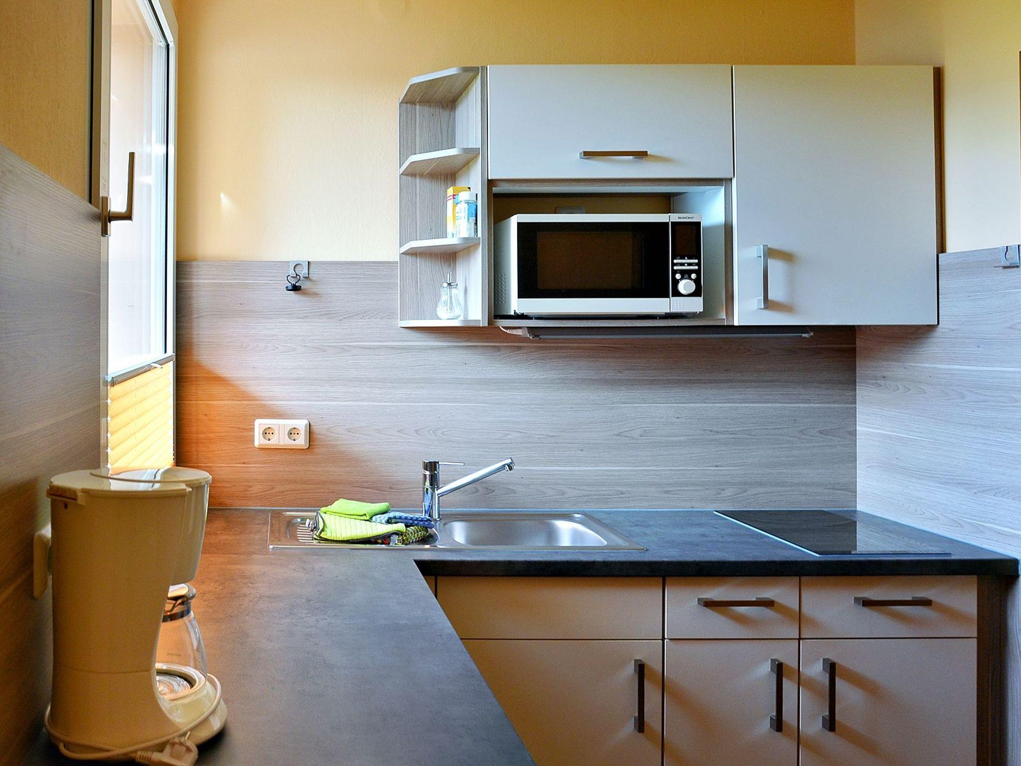 Das App. hat ca. 40 qm. Sie betreten das App. über einen kleinen Flur von dem aus sie in die Küche, das Bad und den Wohn-Schlafraum gelangen. Im Wohn-Schlafraum stehen die Betten getrennt an