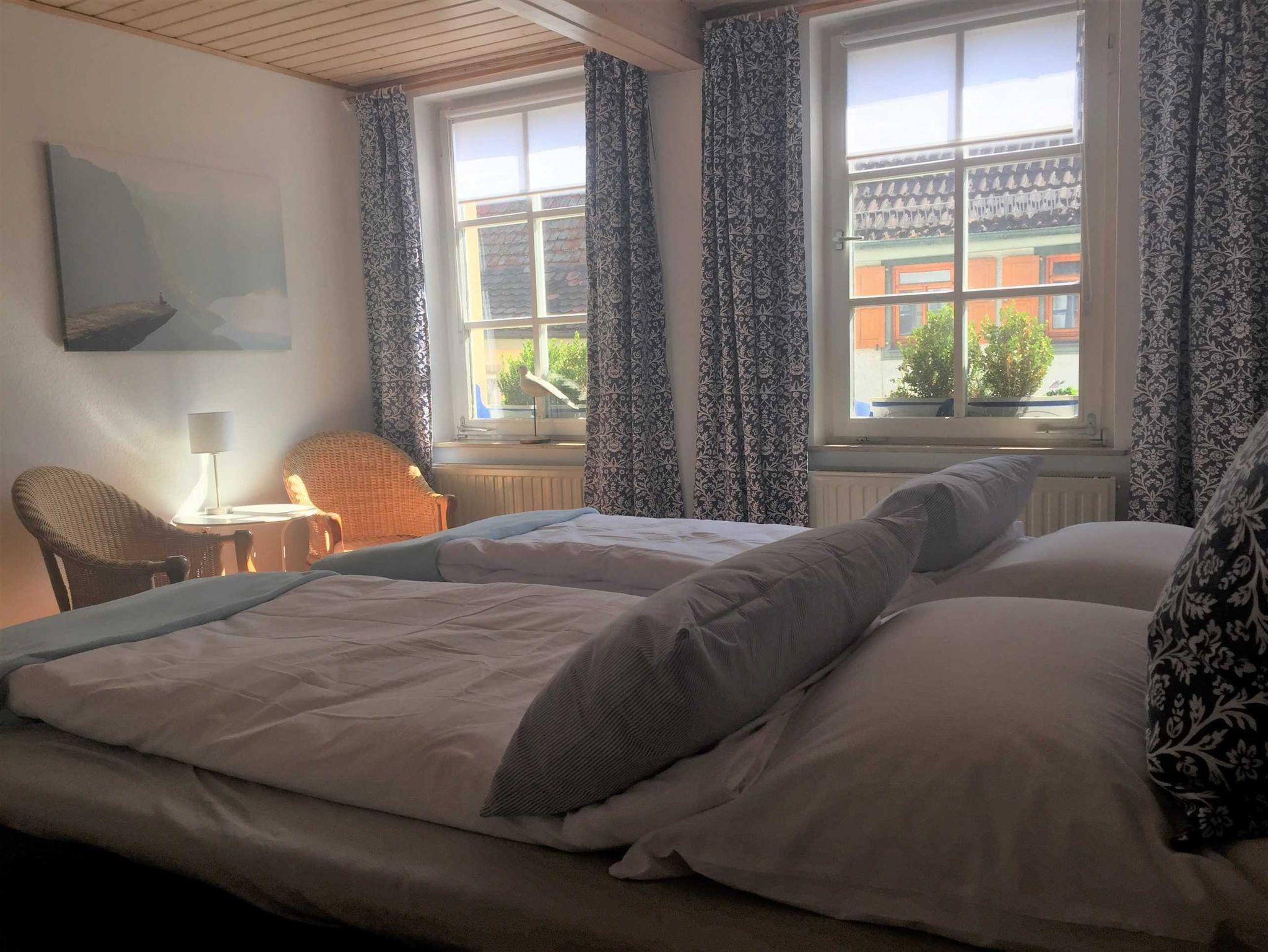 Moderne, romantisch eingerichtete Wohnung (65 qm) in der ersten Etage des historischen Stadthauses, Original Ambiente mit saniertem Dielenboden. Gemütliches Wohnzimmer, Essplatz mit 4 bequemen Stühlen, Couch und Sessel, Kabel-TV, freies W-LAN,