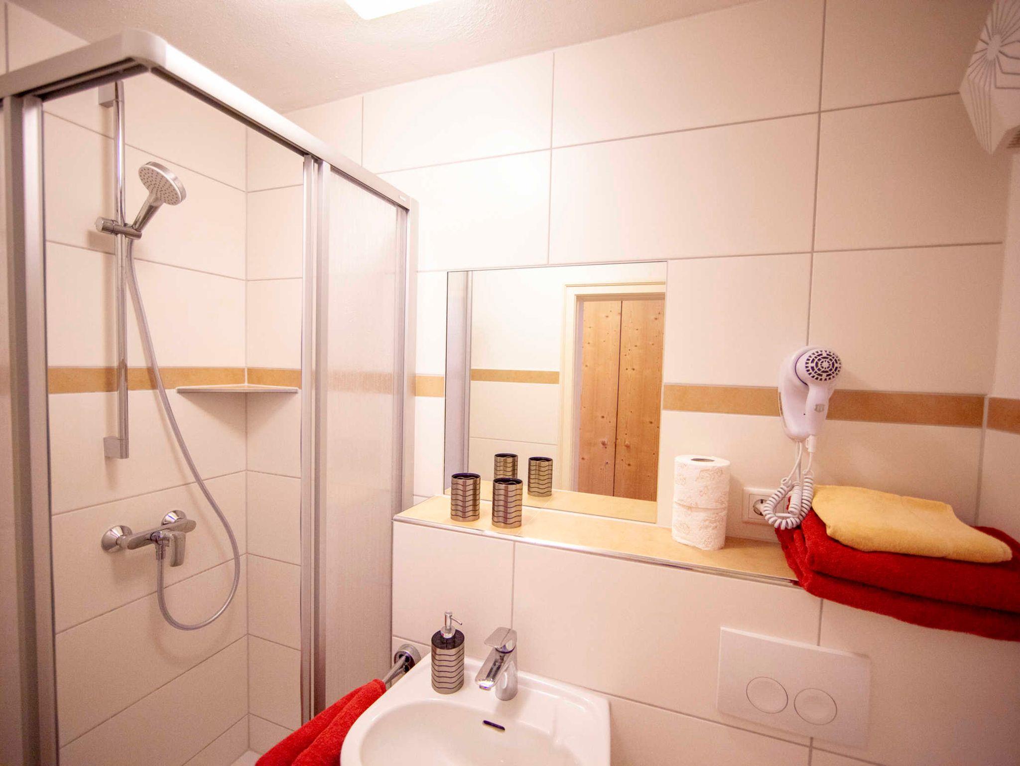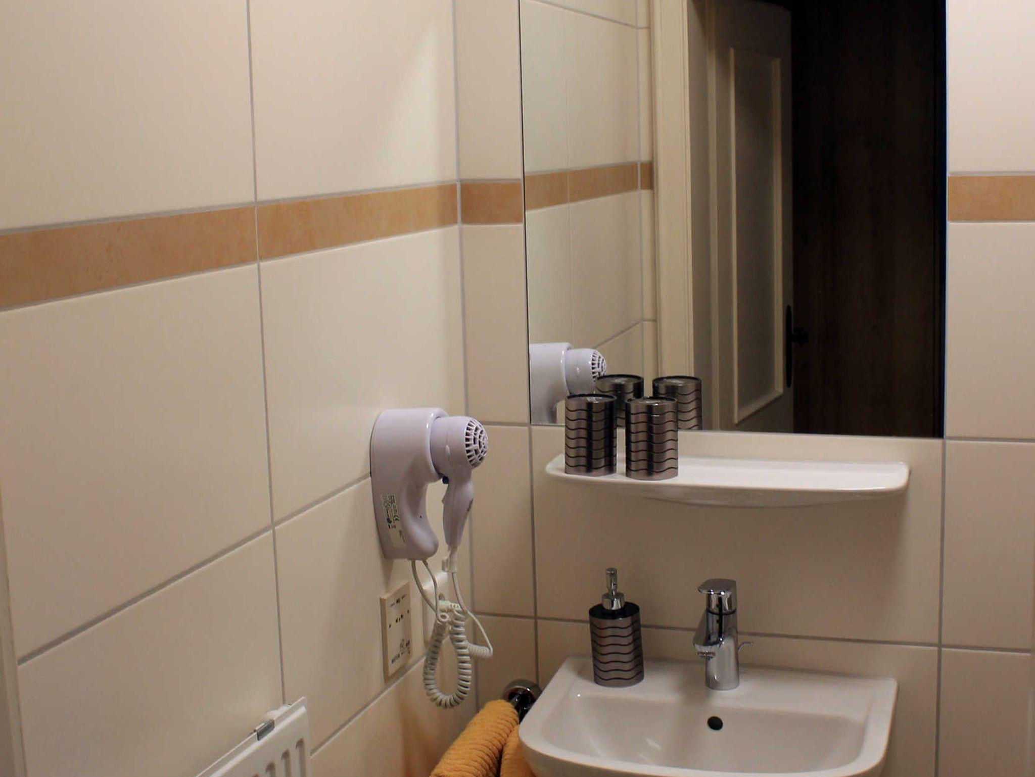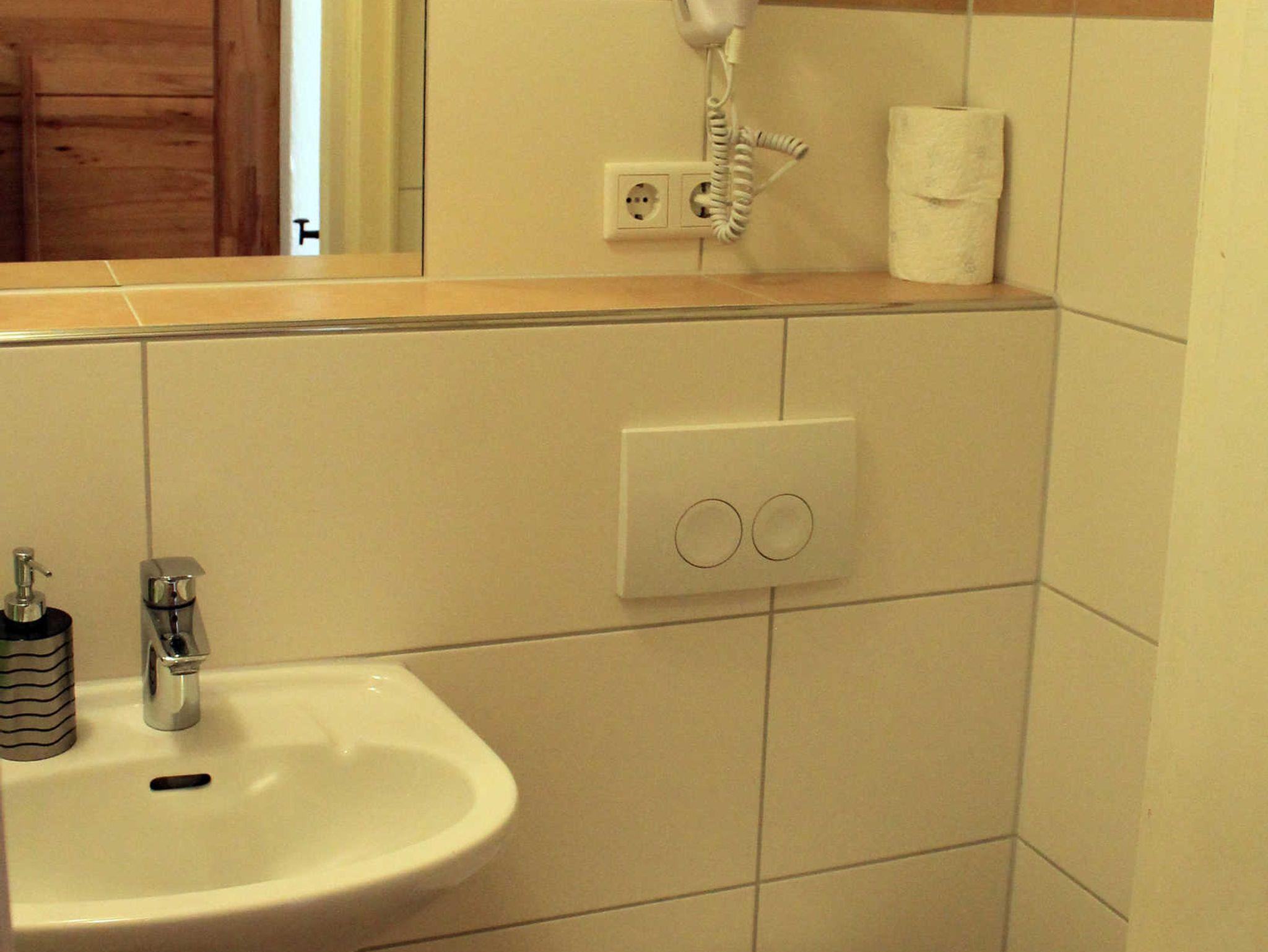 Jedes Doppelzimmer besitzt ein eigenes kleines Bad mit Dusche und WC. Zusätzlich ist dort ein Haarföhn installiert. Im Zimmer steht, neben dem im gesamten Haus verfügbaren drahtlosen Internet, ein 32-HD-Fernseher für gemütliche Abende zur Verfügung.