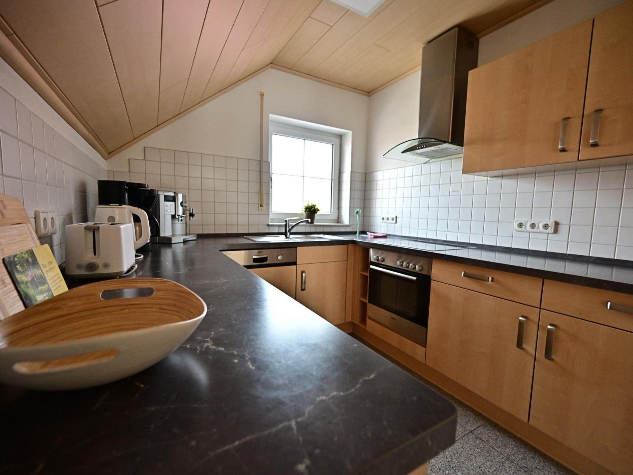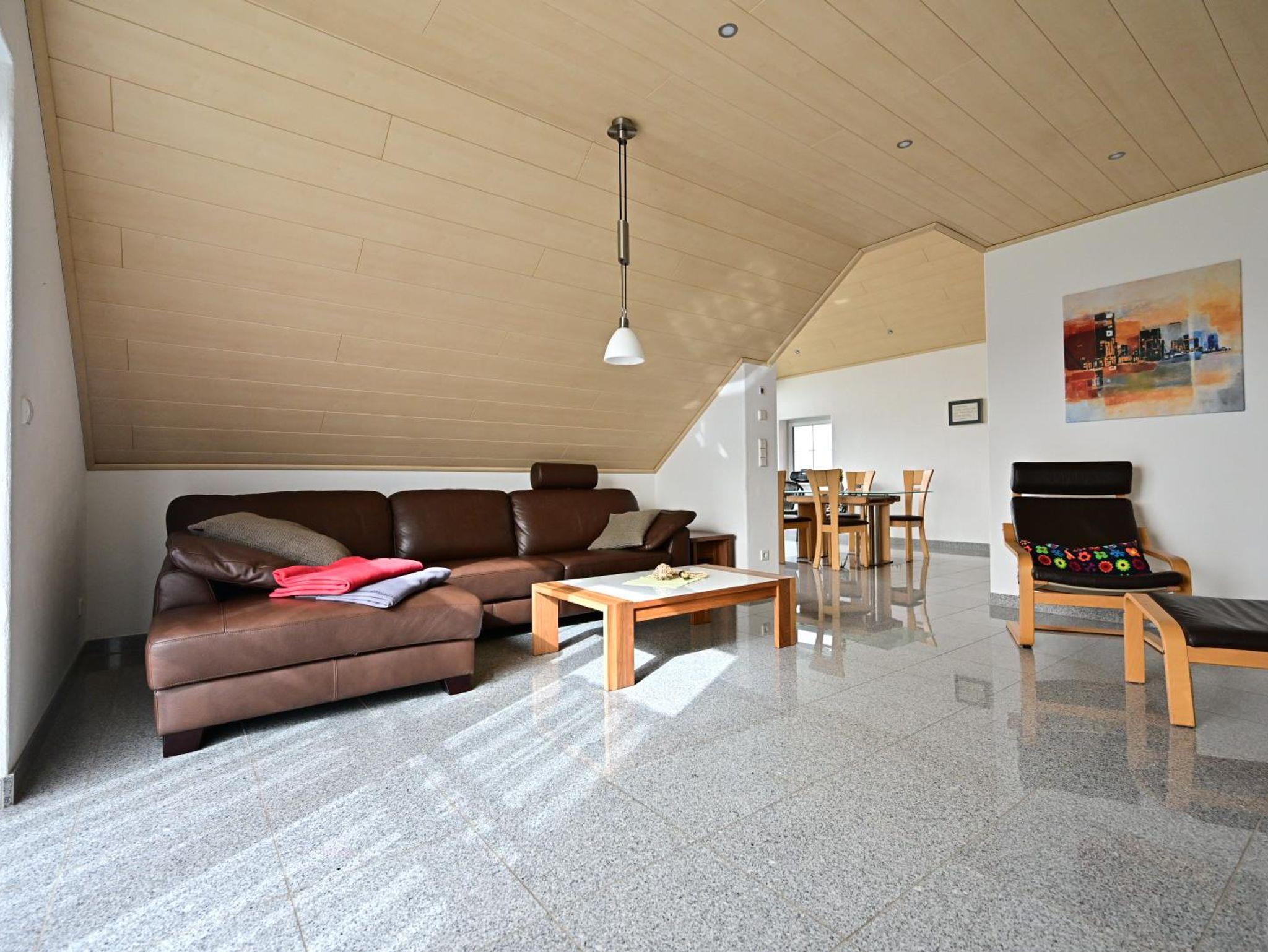 Die großzügige, 100 m² große Nichtraucher-Wohnung in unserem Ferienhaus bietet einen großzügigen Wohnraum, von dem Sie Zugang zum Südbalkon haben.