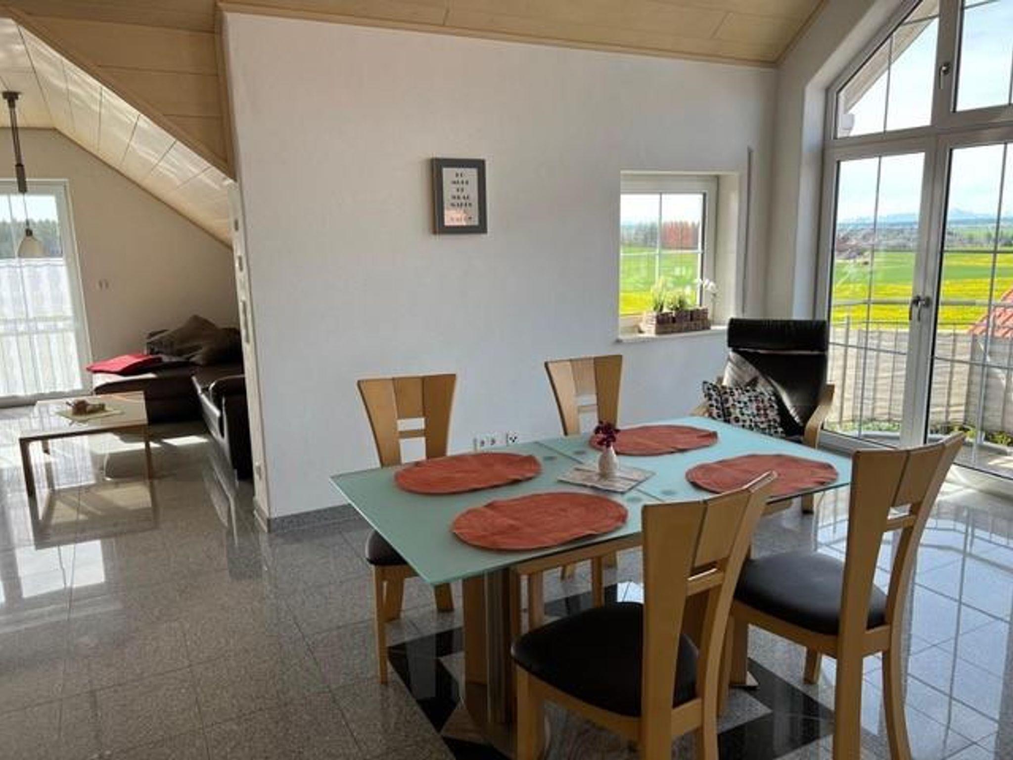 Vom Wohnzimmer aus haben Sie eine traumhafte Aussicht auf das Wurzacher Ried und die Allgäuer Alpenkette. Die herrlich ruhige Lage und die vielen Angebote rund ums Haus lassen Ihren Aufenthalt zum Traumurlaub werden.