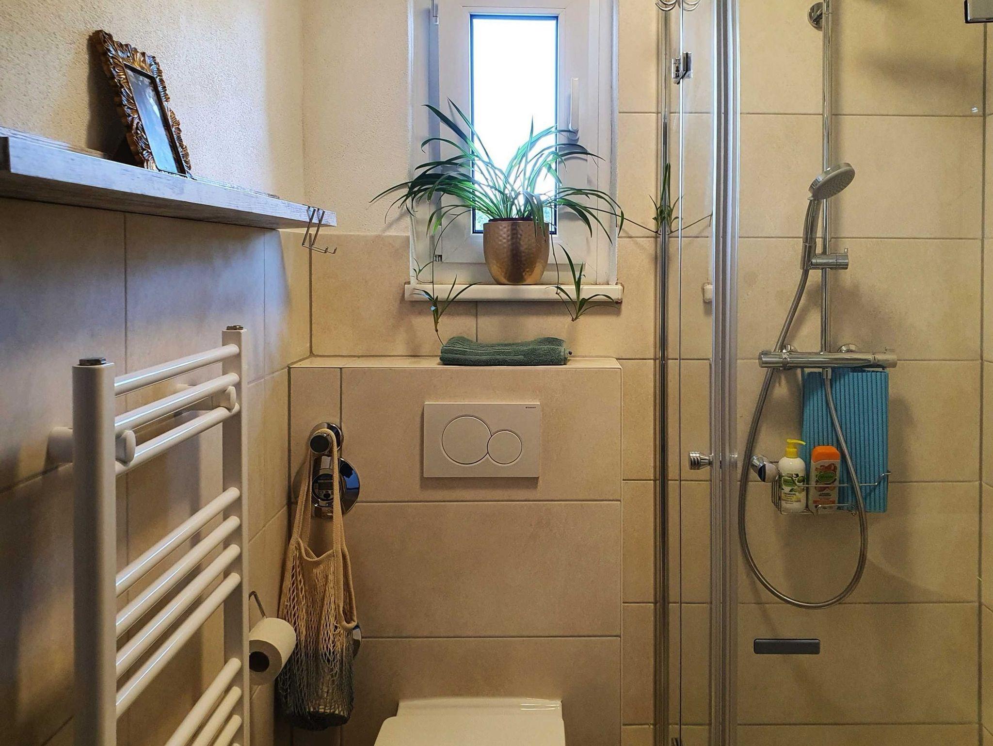 WLAN, Fernseher mit DVD-Player, DVDs, Bücher und Spiele, Tageslichtbad mit Handtüchern, Fön und Kosmetikspiegel, Einbauschrank, Besenschrank mit Staubsauger, Bügeleisen und Bügelbrett, Infomappe