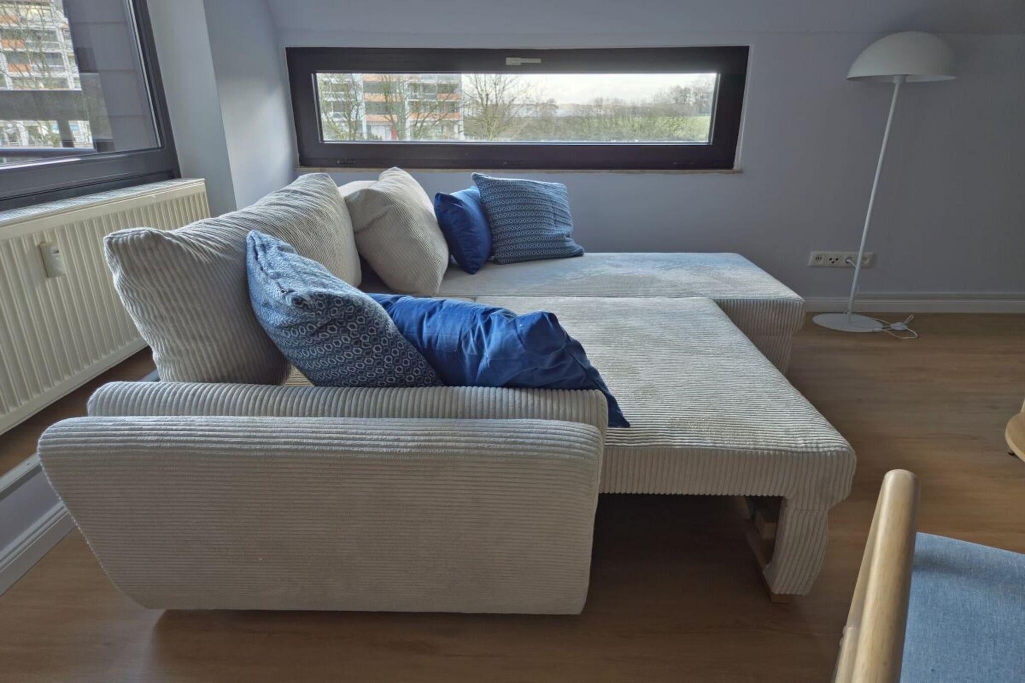 Beliggende i bakkerne i Bad Zwischenahn finder I den stilfulde ferielejlighed Stella med maritim stil. Den centrale beliggenhed giver jer mulighed for hurtigt at komme til bymidten eller det omkringliggende landskab via en idyllisk cykelsti. Lejligheden på første sal, der er tilgængelig via trapper eller elevator, blev møbleret i 2025. Fra stuen og soveværelset har I en vidunderlig udsigt over Zwischenahn-søen. Køkkenet er udstyret med køkkengrej og apparater af høj kvalitet. Spisebordet kan forlænges, hvilket giver rigelig plads til en bærbar computer, hvis I ønsker at kombinere ferie og arbejde. Stuen har et smart-tv med en gratis Netflix-konto, en lille soundbar og en sovesofa. Denne har komfortabel plads til to voksne og et lille barn. Soveværelset er møbleret med en stor 1,8 x 2 m seng og et spejl i fuld længde. Gratis brug af vaskemaskine og tørretumbler er inkluderet. For kaffeelskere er der en fuldautomatisk kaffemaskine, en moka-kande eller en klassisk drypkaffemaskine til rådighed.