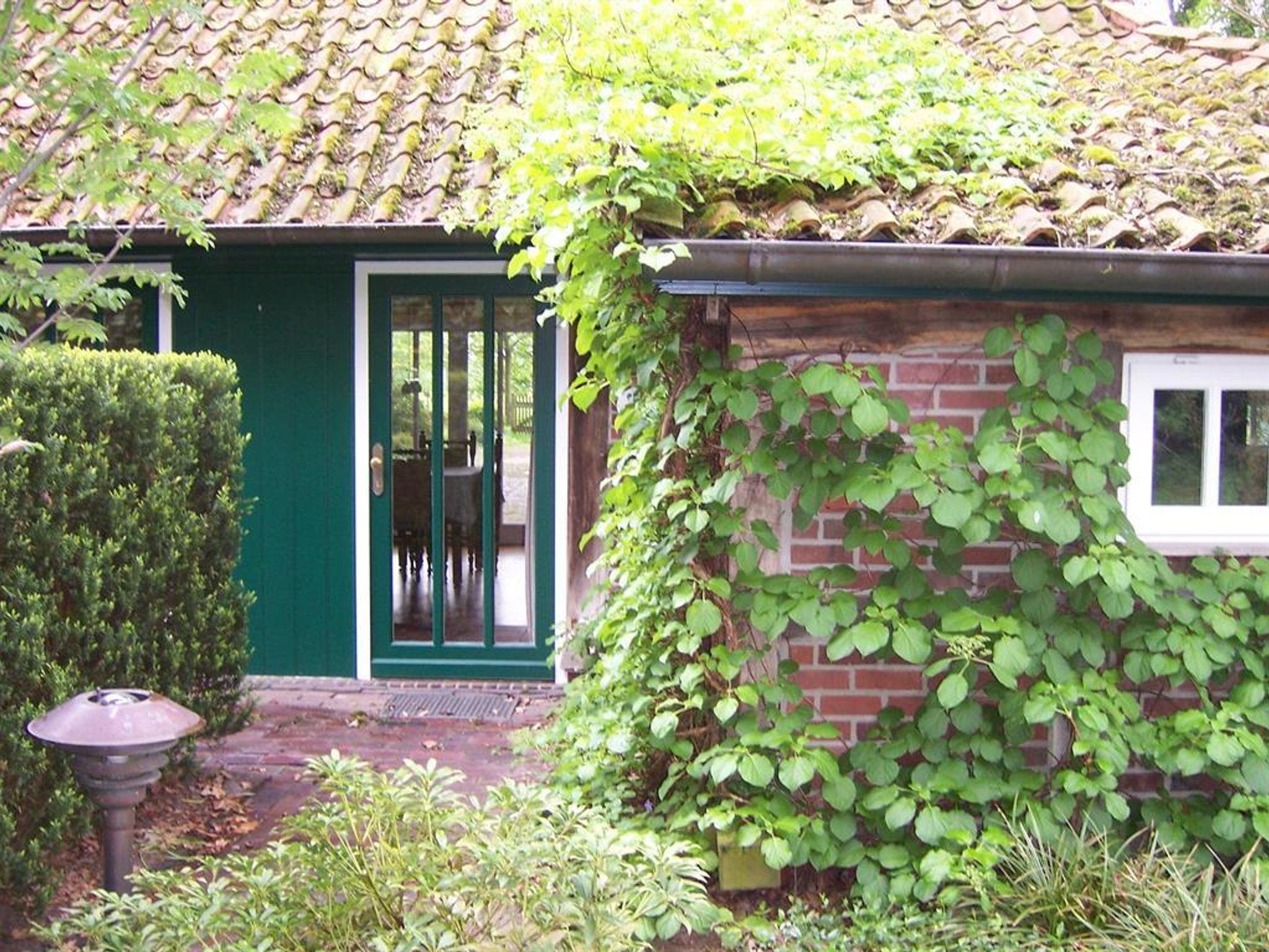 In ruhiger Lage, am Rande Bad Zwischenahns, kurz vor dem Findlandsmoor, liegt unser denkmalgeschütztes Bauernhaus idyllisch unter alten Eichen. Wir haben es im historischen Stil renoviert. Ein Fachwerknebengebäude ist als Ferienhaus (4-Sterne * * * *) umgebaut und bietet Platz für 4 Personen. Ausgestattet ist es mit 2 Schlafräumen, großem Wohnzimmer mit Küche, Duschbad, eigener Terrasse, sep. Eingang, Kinderspielgeräten, Badeteich, Farbfernseher, Stereoanlage, Telefon und Carport. Einkaufsservice vor Anreise.
