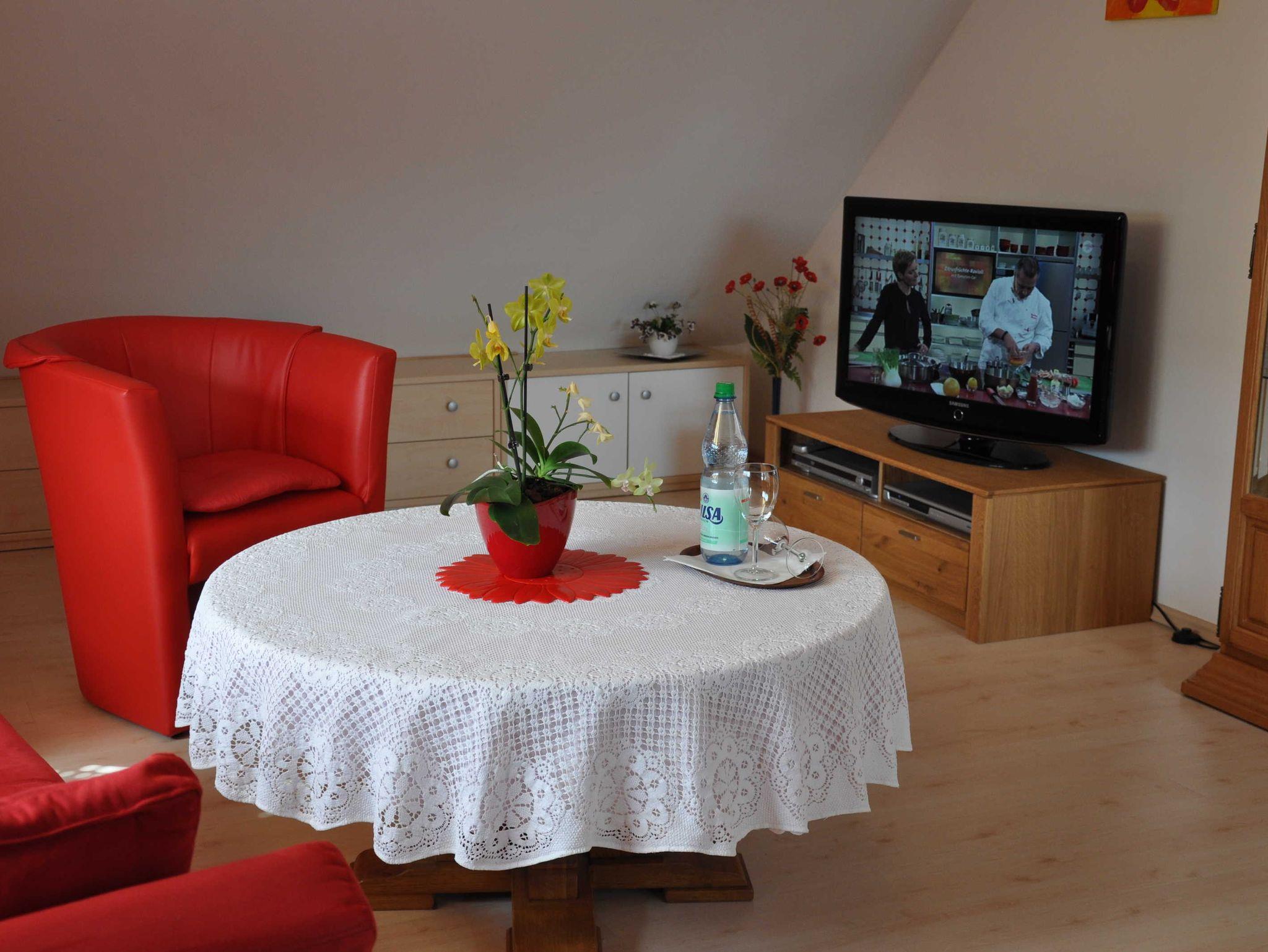Die Ferienwohnung befindet sich im Obergeschoss eines Zweifamilienhauses. Sie ist ca. 76 qm groß. Das Wohnzimmer ist hell, gemütlich und komfortabel eingerichgtet. Das geräumige Schlafzimmer verfügt über ein Doppelbett, Schlafsofe, TV und Stereoanlage. In der Küche finden sie eine kompl. Einbauküche mit Geschirrspülmaschine, E-Herd, Microwelle usw. Im modernen Badezimmer mit Dusche befinden sich Haartrockner und Handtücher. Auf der Galerie lädt eine gemütliche Sitzgruppe zum Verweilen ein. Im Garten steht ein gedmütlicher Sitzplatz mit grossem Sonnenschirm für unsere Gäste bereit.