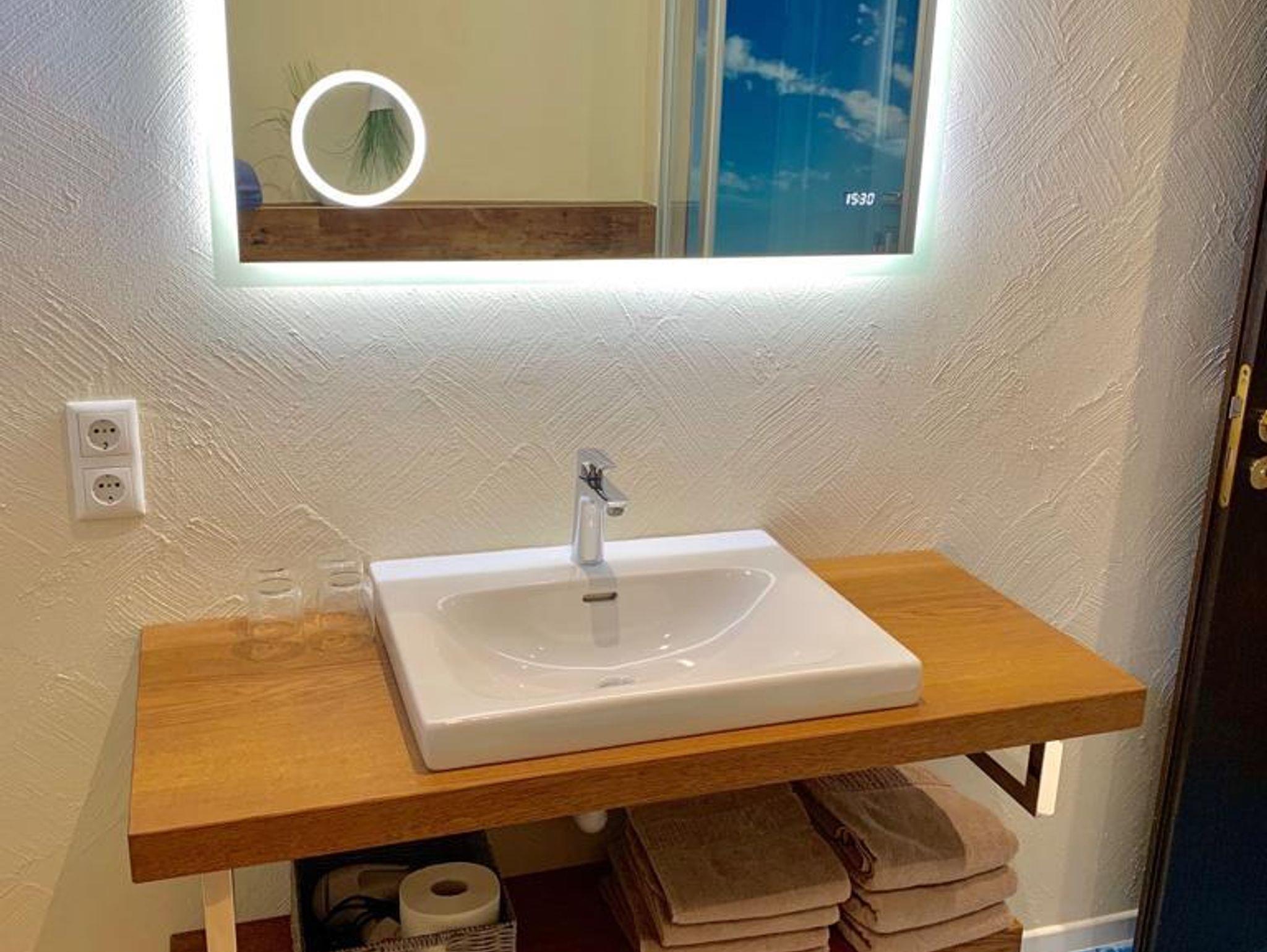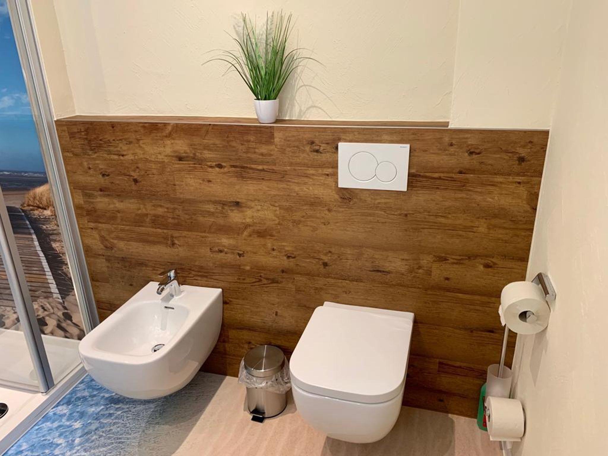 Morgens ein gemütliches Frühstück, Mittags ein kleiner Salat von Ihnen zubereitet in der komplett ausgestatteten Küche und Abends vielleicht ein entspanntes Abendessen in unserem Restaurant „Der Ahrenshof“ 350m entfernt (bitte unbedingt reservieren Tel: 04403-4711). Später lassen sie den Abend bei einem Glas Wein in Ihrer gemütlichen Sofaecke ausklingen. Unsere exklusiven Boxspringbetten garantieren Ihnen danach einen erholsamen Schlaf. Hat sie das Badezimmer überrascht?