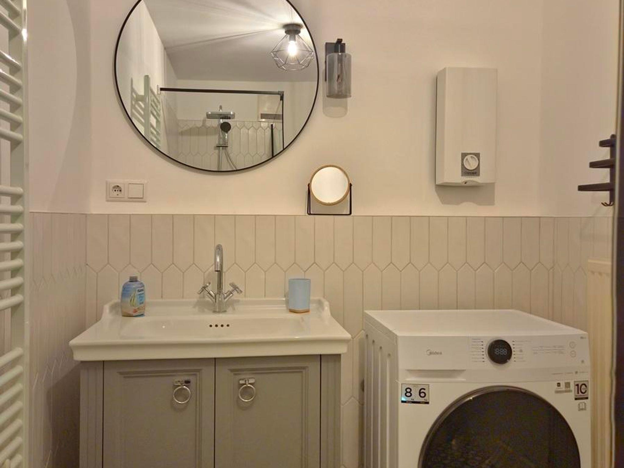 In den Hügelbauten von Bad Zwischenahn befindet sich die stilvolle Ferienwohnung Stella mit maritimen Flair. Die zentrale Lage ermöglicht es Ihnen, die Innenstadt oder die grüne Umgebung über einen idyllischen Radweg schnell zu erreichen. Die Wohnung im ersten Obergeschoss ist über Treppenhaus oder Fahrstuhl erreichbar und wurde 2025 eingerichtet. Vom Wohn- und Schlafzimmer aus haben Sie einen tollen Blick auf das Bad Zwischenahner Meer. Die Küche ist mit hochwertigen Kochutensilien und Elektrogeräten ausgestattet. Der Esstisch kann erweitert werden und bietet so ausreichend Platz für einen Laptop, falls Sie Urlaub und Arbeit verbinden möchten. Im Wohnzimmer gibt es einen Smart-TV mit kostenlosem Netflix-Account, eine kleine Soundbar und ein Schlafsofa. Somit können problemlos zwei Erwachsene und ein Kleinkind Urlaub machen. Das Schlafzimmer ist mit einem großen 1,8x2m Bett und einem schönen Garderobenspiegel ausgestattet. Die kostenlose Nutzung von Waschmaschine und Trockner ist selbstverständlich. Für Kaffeeliebhaber stehen ein Kaffeevollautomat, eine Mokka-Kanne oder eine klassische Kaffeemaschine zur Verfügung.