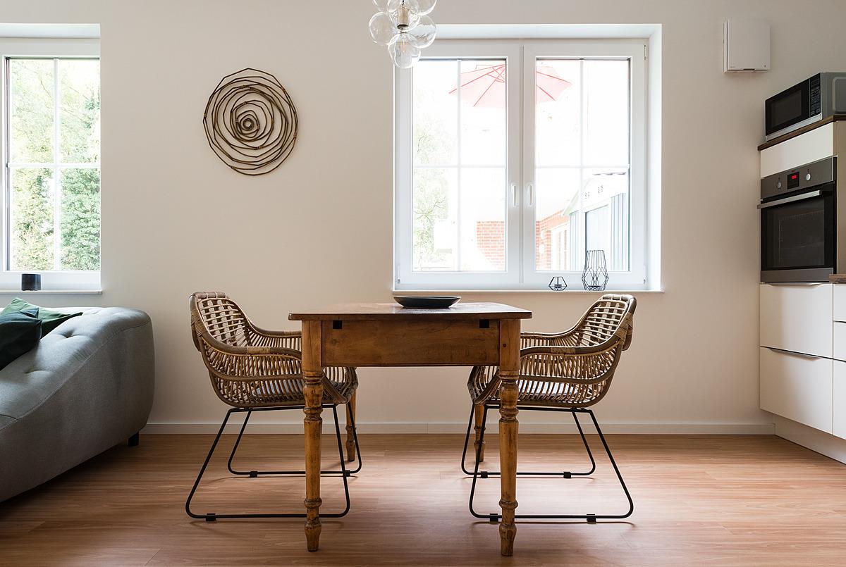 Das Herzstück der Ferienwohnung ist der großzügige, offene Wohn-Essbereich, der mit einer modernen, voll ausgestatteten hellen Küche mit E-Herd, Mikrowelle, Backofen und Spülmaschine, keine Wünsche offen lässt. Starten Sie Ihren Tag mit einem frisch gemahlenen Kaffee aus dem bereit-stehenden Kaffee-Vollautomaten.