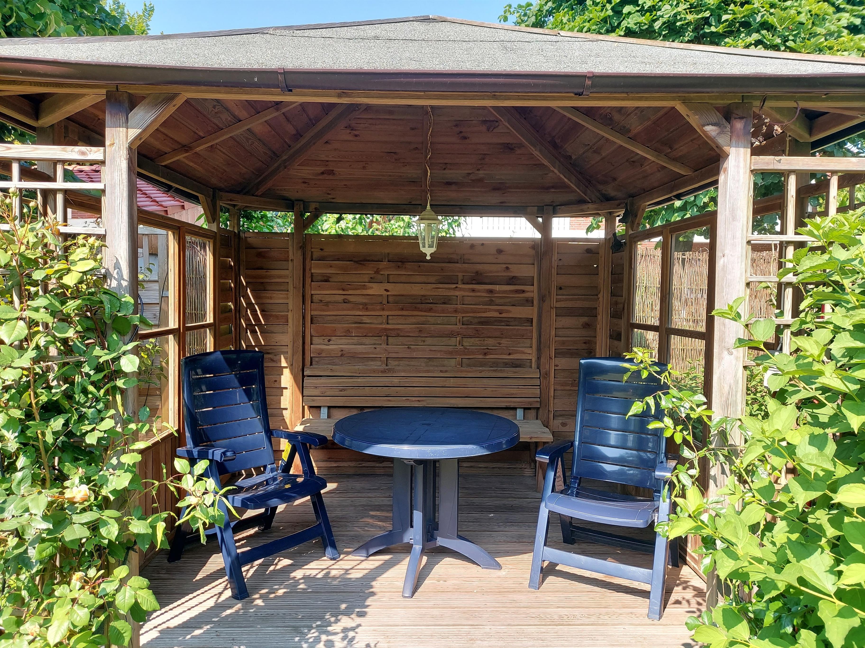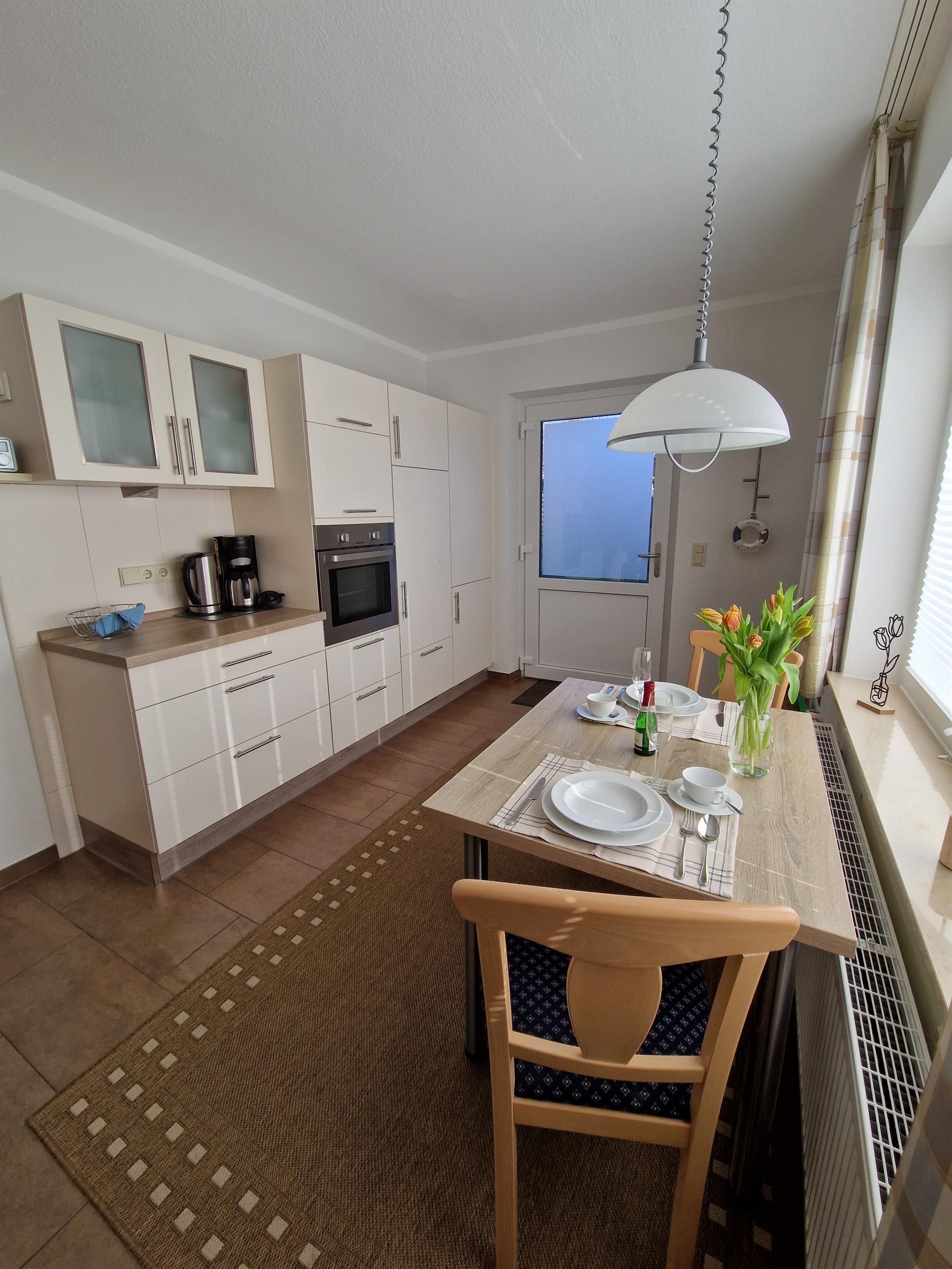 Die modernisierte Küche bietet genug Platz für kulinarische Ausschweifungen und hat einen direkten Zugang zu Ihrer persönlichen Terrasse. Genießen Sie Ihr Frühstück an der frischen Luft, oder lassen den Tag bei einem kühlen Getränk im Gartenpavillion ausklingen.