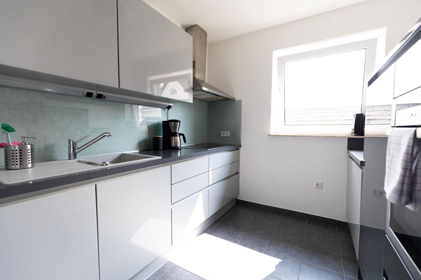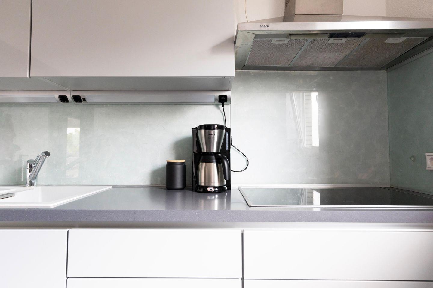 Die Küche ist natürlich voll ausgestattet mit Herd, Kühlschrank, Backofen, Spülmaschine, Mikrowelle und allem was du sonst brauchst um lecker zu kochen. Das Penthouse verfügt ebenso über einen Waschtrockner.