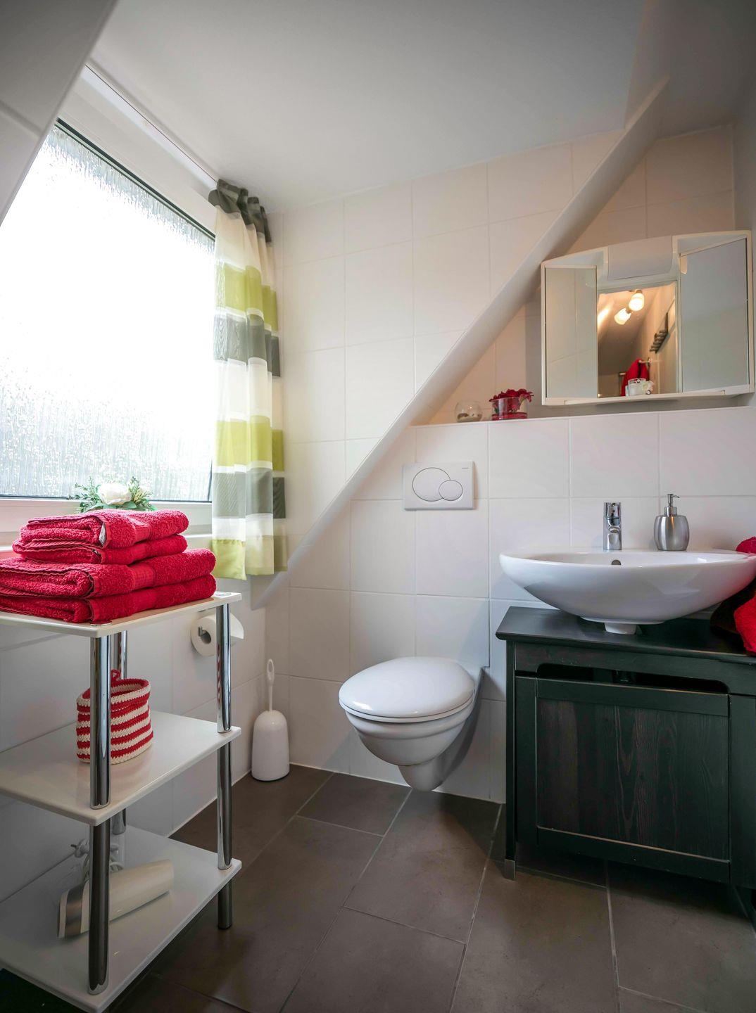In unseren Ferienwohnungen erwartet Dich eine gemütliche und durchdachte Raumaufteilung. Im Erdgeschoss findest Du ein Wohnzimmer mit offener Küche und einem Esstisch für vier Personen, wo ihr gemeinsam Mahlzeiten genießen könnt. In der ersten Etage befindet sich das Schlafzimmer mit einem komfortablen Doppelbett und dem Badezimmer. Oben unter dem Dach erwartet unsere jüngsten Gäste ein charmantes Zimmer mit zwei Einzelbetten.