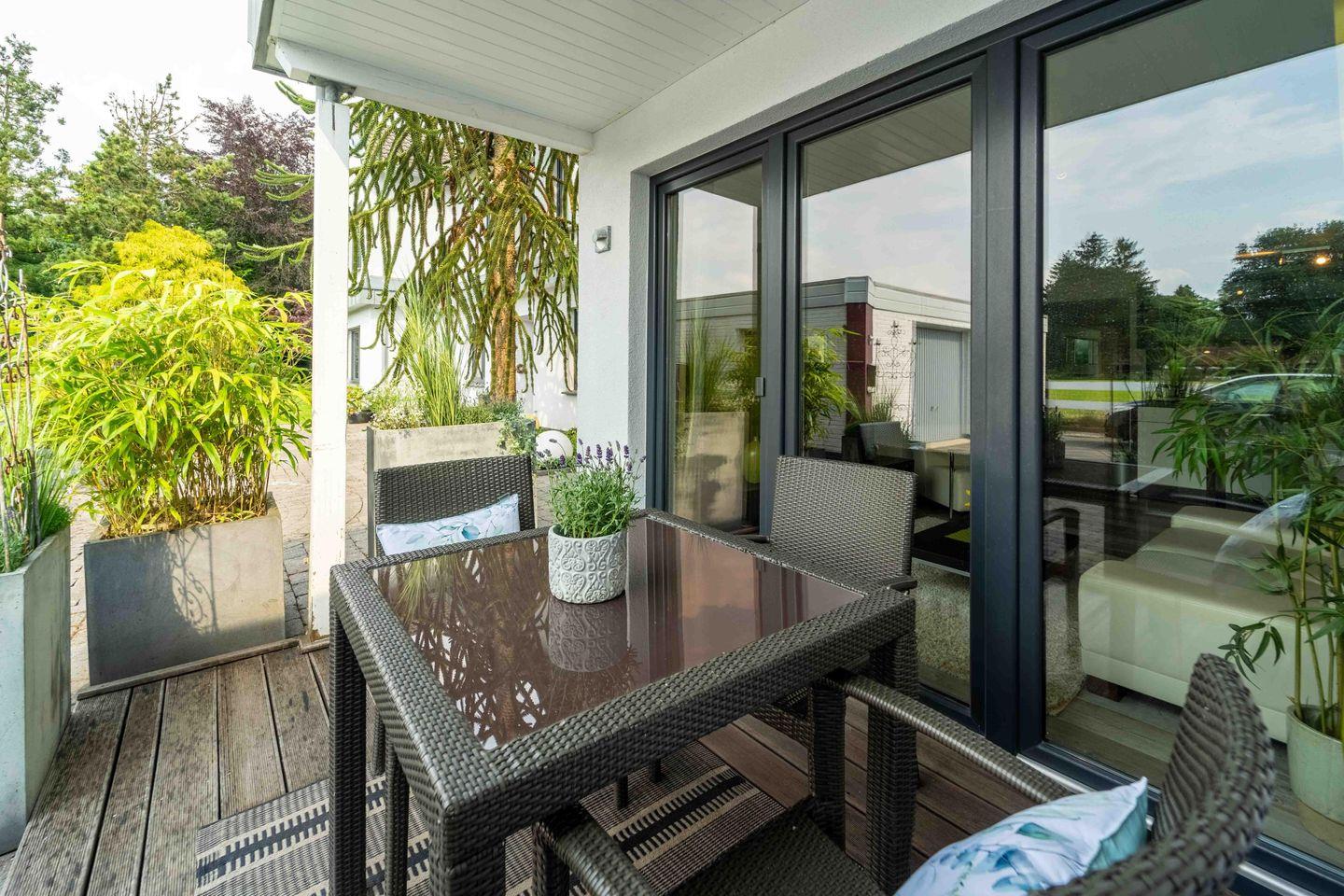 Moderne 50 qm große Ferienwohnung im Erdgeschoss, behinderten- und rollstuhlgerecht. Ein Schlafzimmer, offener Wohnbereich mit voll ausgestatteter Küche, modernes Badezimmer, Ankleidezimmer mit Safe und private Terrasse. WLAN, TV und Parkplatz direkt vor der Tür inklusive. Großer gemeinschaftlicher Garten, sichere Abstellmöglichkeit für Fahrräder. Ideal für ältere Gäste und Paare. Keine Partys oder Junggesellenabschiede erlaubt. Flexible Anreise per Schlüsselbox.