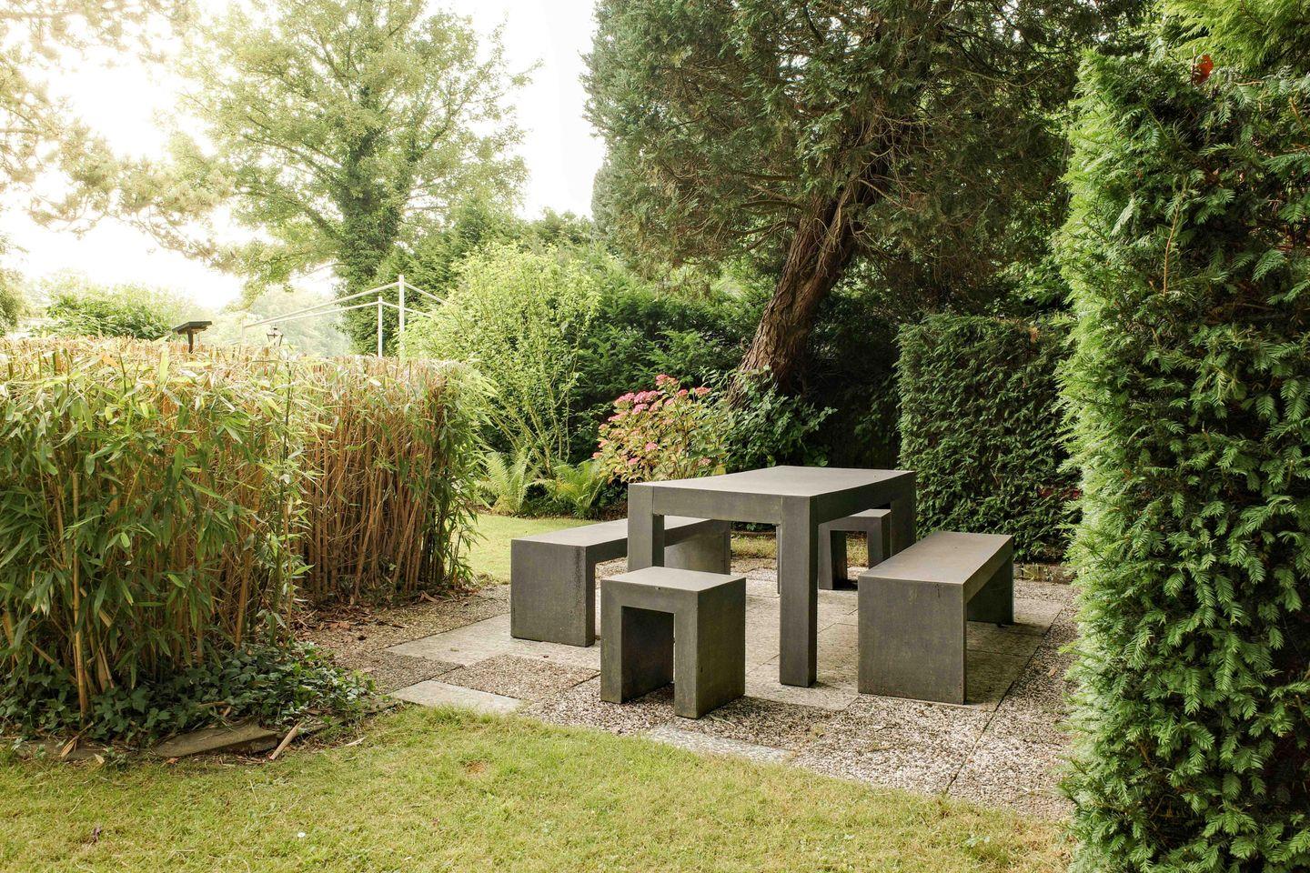 Gäste haben Zugang zu einem großen gemeinschaftlichen Garten, der mit Gartenstühlen, Liegen und einem Strandkorb am Teich ausgestattet ist. Fahrräder können sicher in der Garage abgestellt werden. Das Haus beherbergt insgesamt drei Ferienwohnungen, sodass Du bei Bedarf auch mit Freunden oder Familie gemeinsam Urlaub machen kannst.