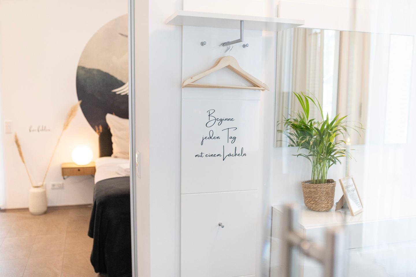 Beginne Deinen Tag mit leckerem Kaffee und genieße all die Annehmlichkeiten dieses Apartments, einschließlich der großen Terrasse mit exklusivem Seeblick, großzügigen Sitzbereichen für 4 Personen, einem Grill und Zugang zur Sauna auf der Anlage. Die Wohnung ist inspiriert vom Element Luft, was sich in einem ruhigen und erfrischenden Interior-Design widerspiegelt.