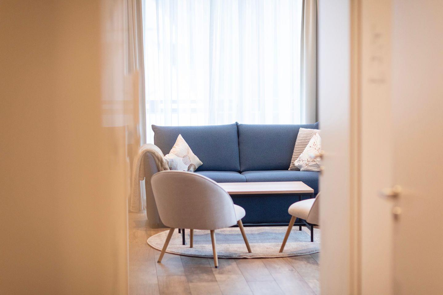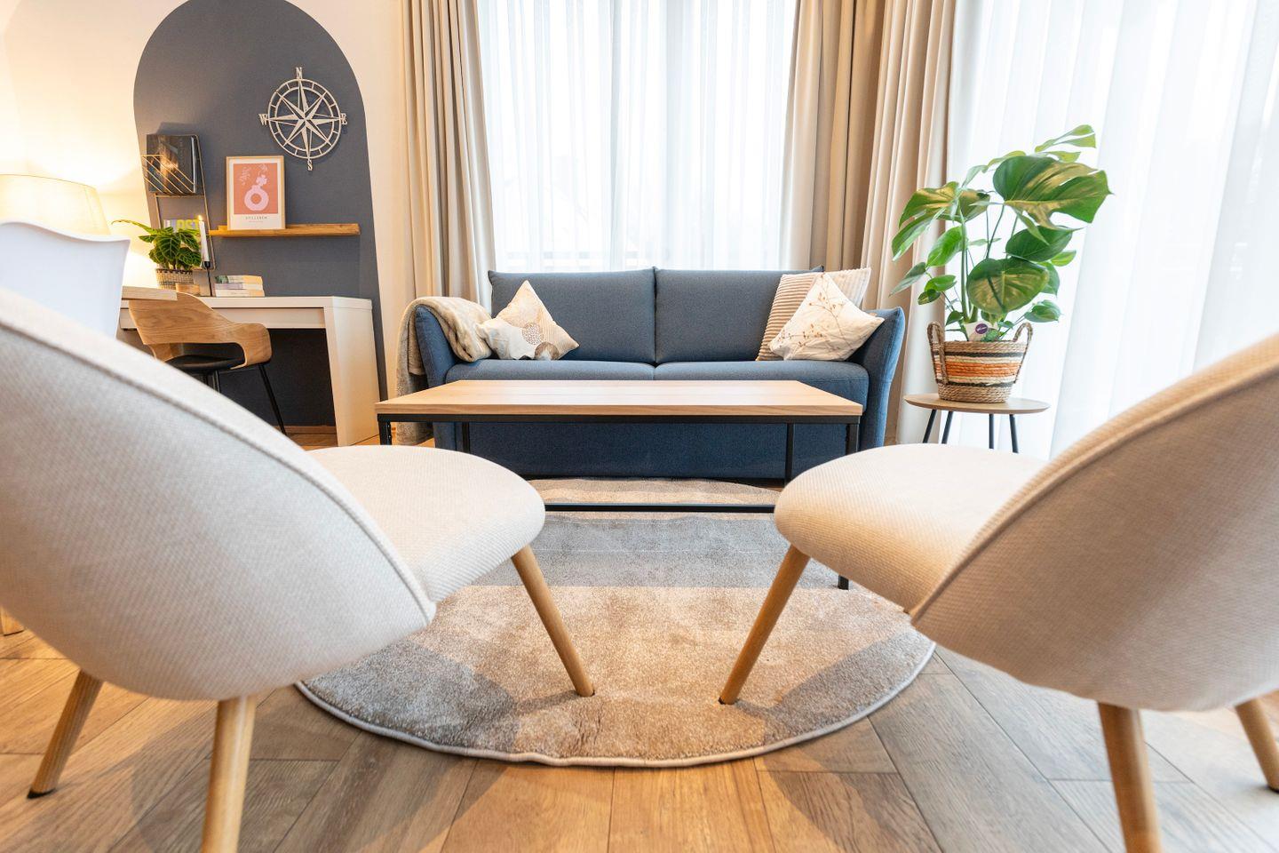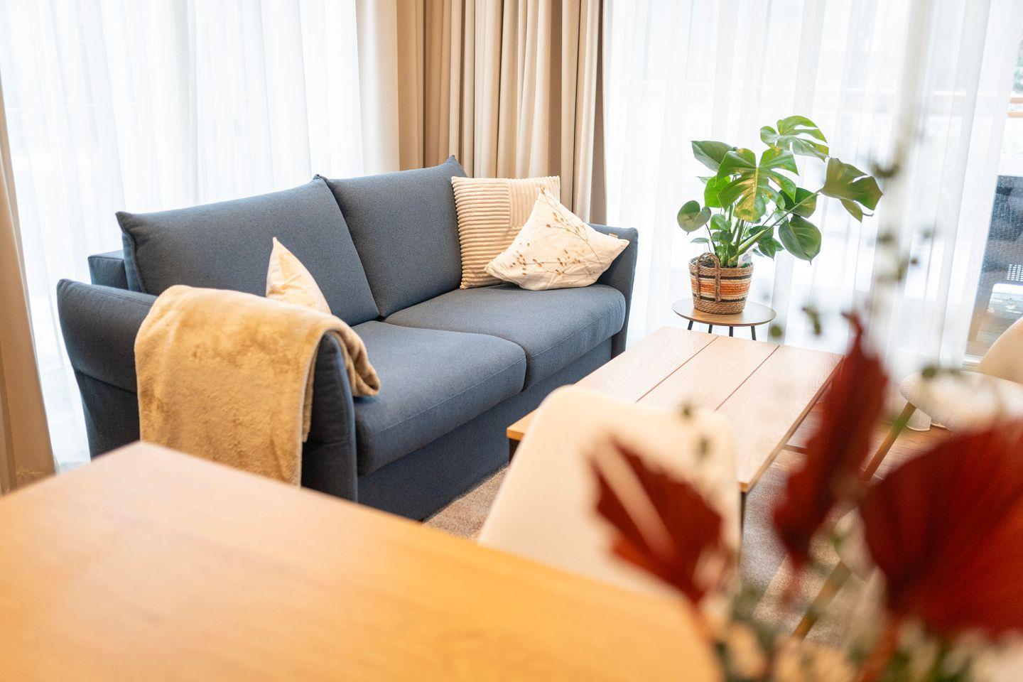 Beginne Deinen Tag mit leckerem Kaffee und genieße all die Annehmlichkeiten dieses Apartments, einschließlich der großen Terrasse mit exklusivem Seeblick, großzügigen Sitzbereichen für 6 Personen, einem Grill und Zugang zur Sauna auf der Anlage. Die Wohnung ist inspiriert vom Element Luft, was sich in einem ruhigen und erfrischenden Interior-Design widerspiegelt.