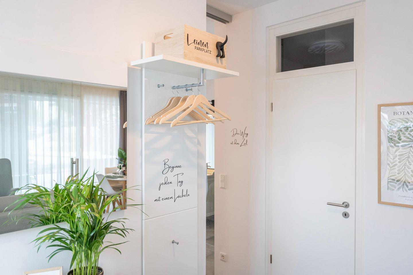 Mit dem Auto kannst Du unsere kostenfreien Stellplätze direkt am Haus nutzen. Dich erwartet ein 59 Quadratmeter großes Apartment mit 1 Schlafzimmern, 1 Bad, Wohnzimmer, Küche und Gäste WC.