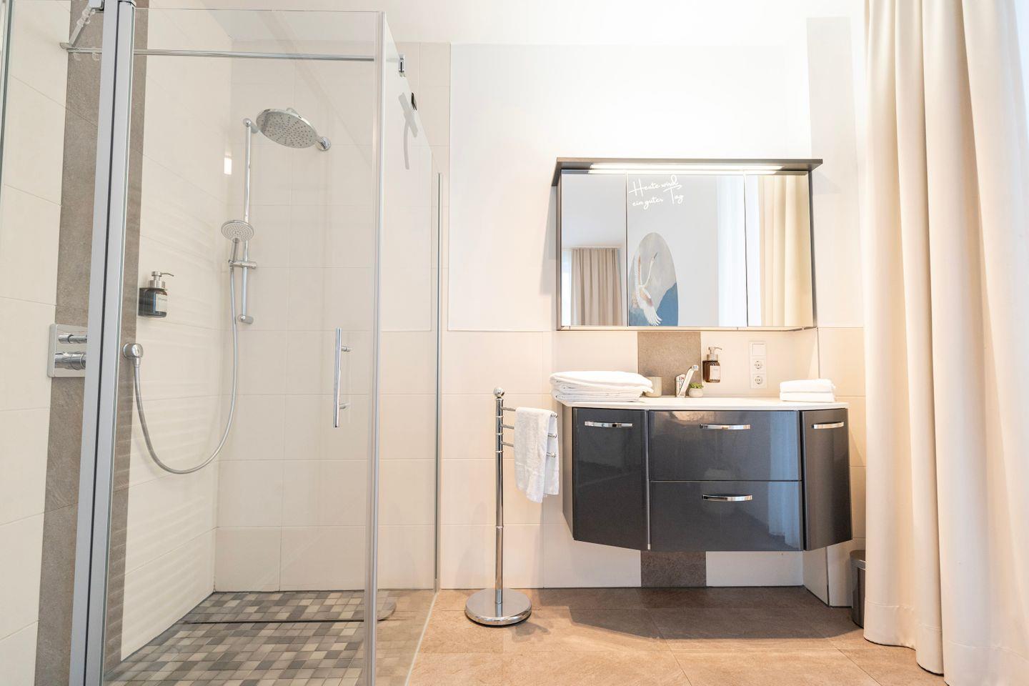 Wir sorgen dafür, dass es dir an nichts fehlt – frische Handtücher, Duschgel und Shampoo stehen für dich bereit.