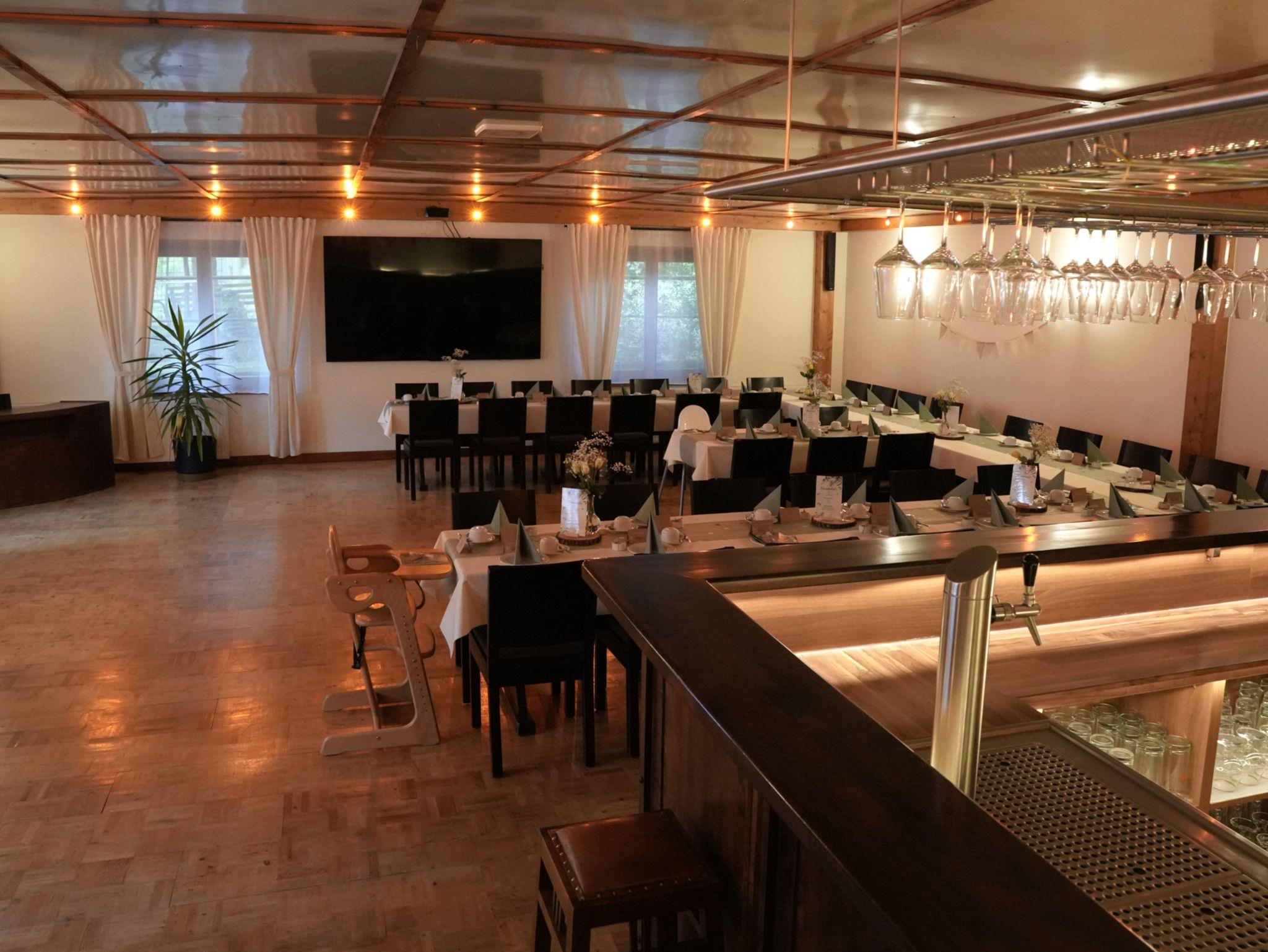 Unsere Pension besticht durch eine ruhige Lage am Ortsrand, ideal für Senioren, Singles sowie Gruppen. Der große Feiersaal bietet Platz für bis zu 90 Personen und ist perfekt für Feiern oder Veranstaltungen. Entspannen Sie in unserem Saunabereich nach einem aktiven Tag in der Natur oder genießen Sie die Zeit im Aufenthaltsraum mit Billardtisch, Darts und Tischtennis.