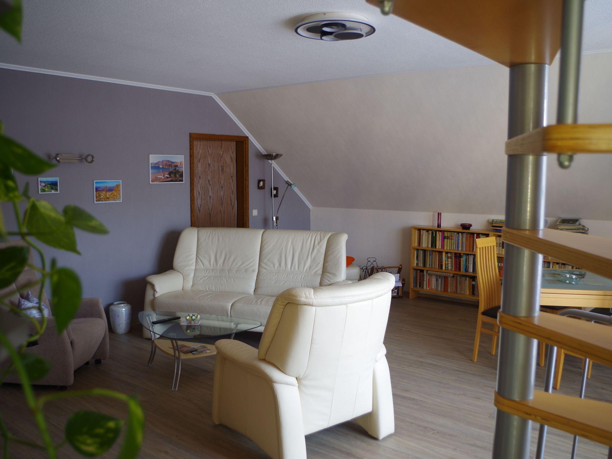Unsere nun fertig renovierte 2te Ferienwohnung befindet sich in einem Einfamilienhaus ca. 850m entfernt von unserem Haupthaus im Obergeschoss. Die ruhige Lage durch einen Privatweg sorgt für Entspannung & Erholung.