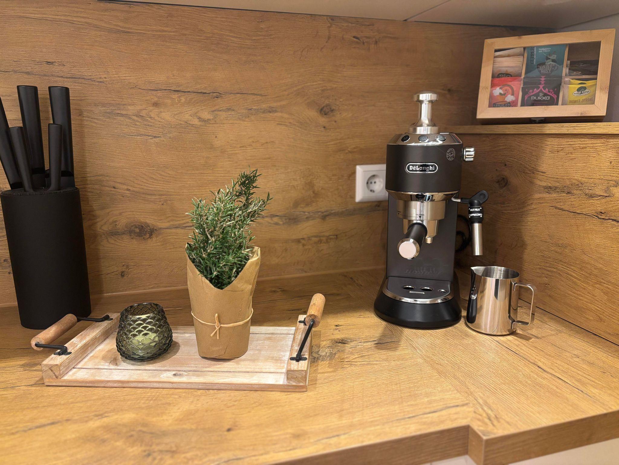 Die Ferienwohnung befindet sich im Erdgeschoss des Einfamilienhauses und verfügt über einen Schlafbereich mit Doppelbett, Wohn-Essbereich mit Waipu-TV, Netflix, Radio, vollausgestattete Küche mit Backofen, Kühlschrank, Ceran-Kochfeld, Siebträgermaschine sowie auch Kaffeefiltermaschine, Wasserkocher, Toaster und Eierkocher, Dusche und WC, Haartrockner.