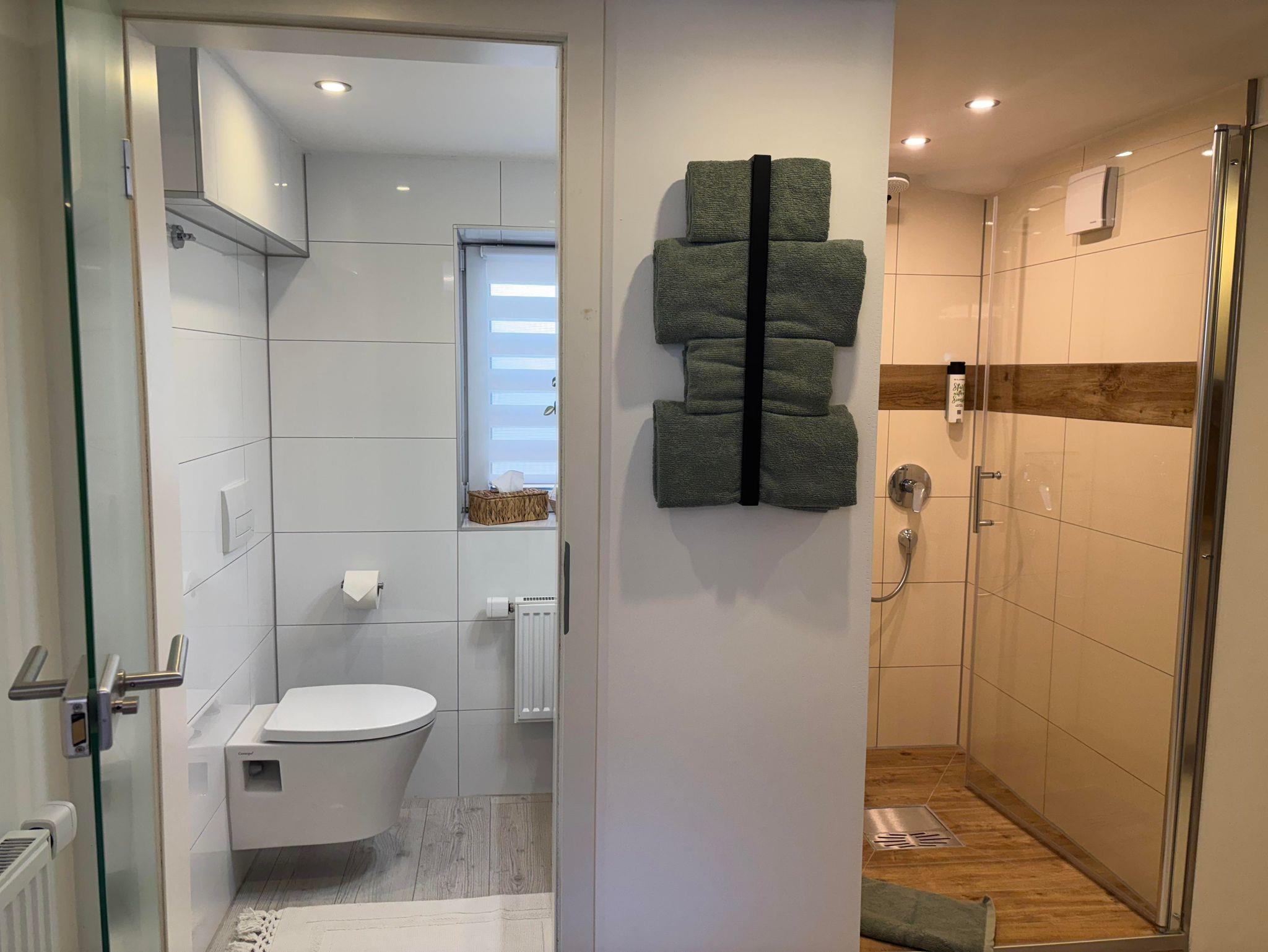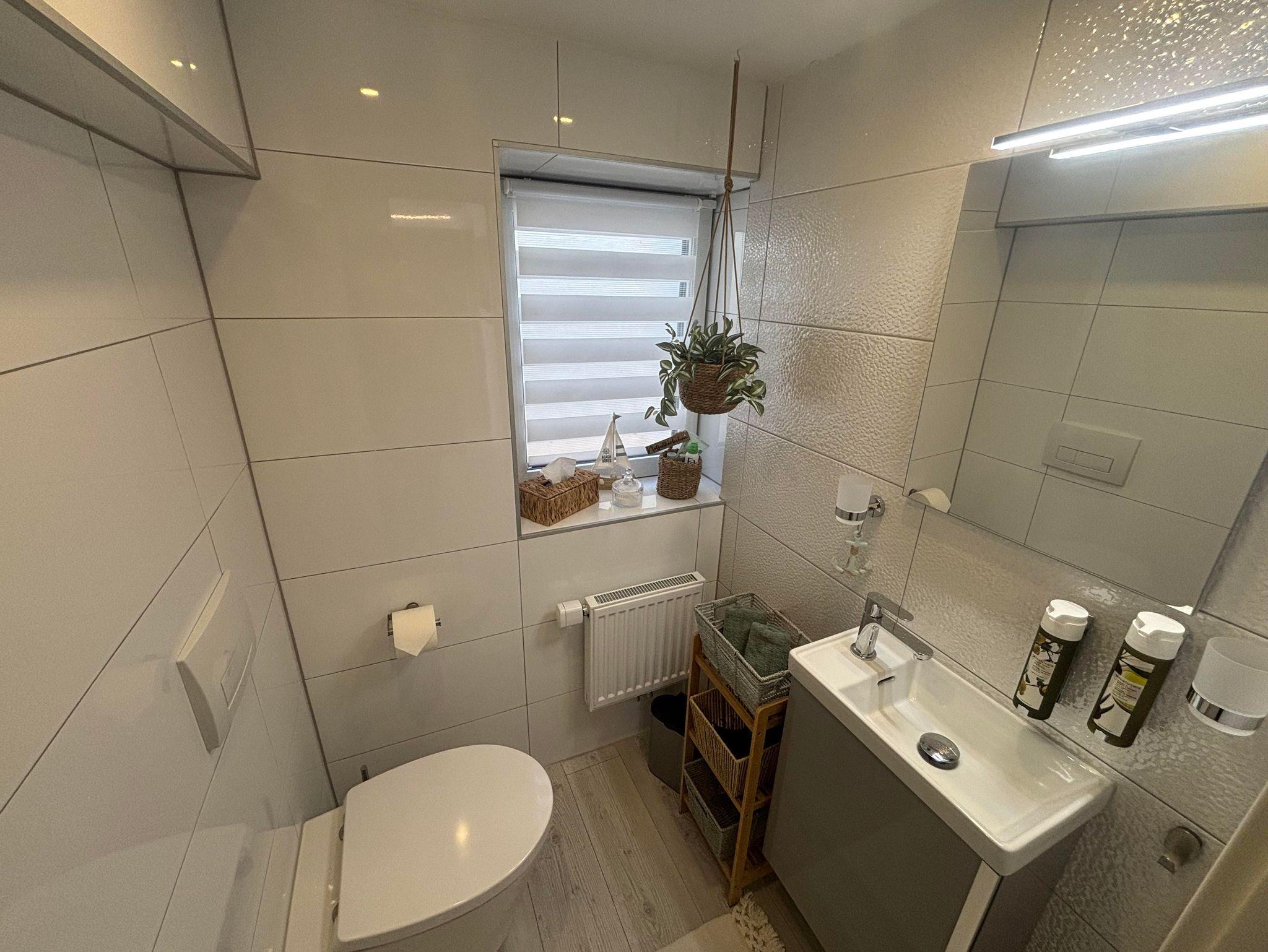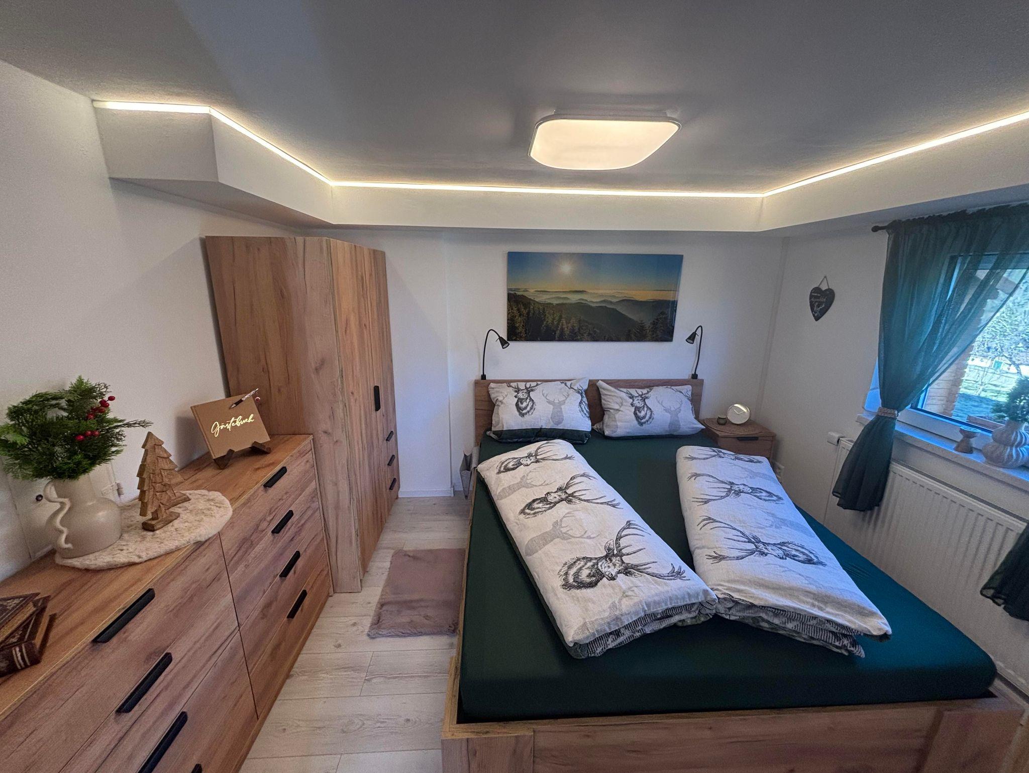 Die Ferienwohnung befindet sich im Erdgeschoss des Einfamilienhauses und verfügt über einen Schlafbereich mit Doppelbett, Wohn-Essbereich mit Waipu-TV, Netflix, Radio, vollausgestattete Küche mit Backofen, Kühlschrank, Ceran-Kochfeld, Kaffevollautomat, Wasserkocher, Toaster und Eierkocher, Dusche und WC, Haartrockner.