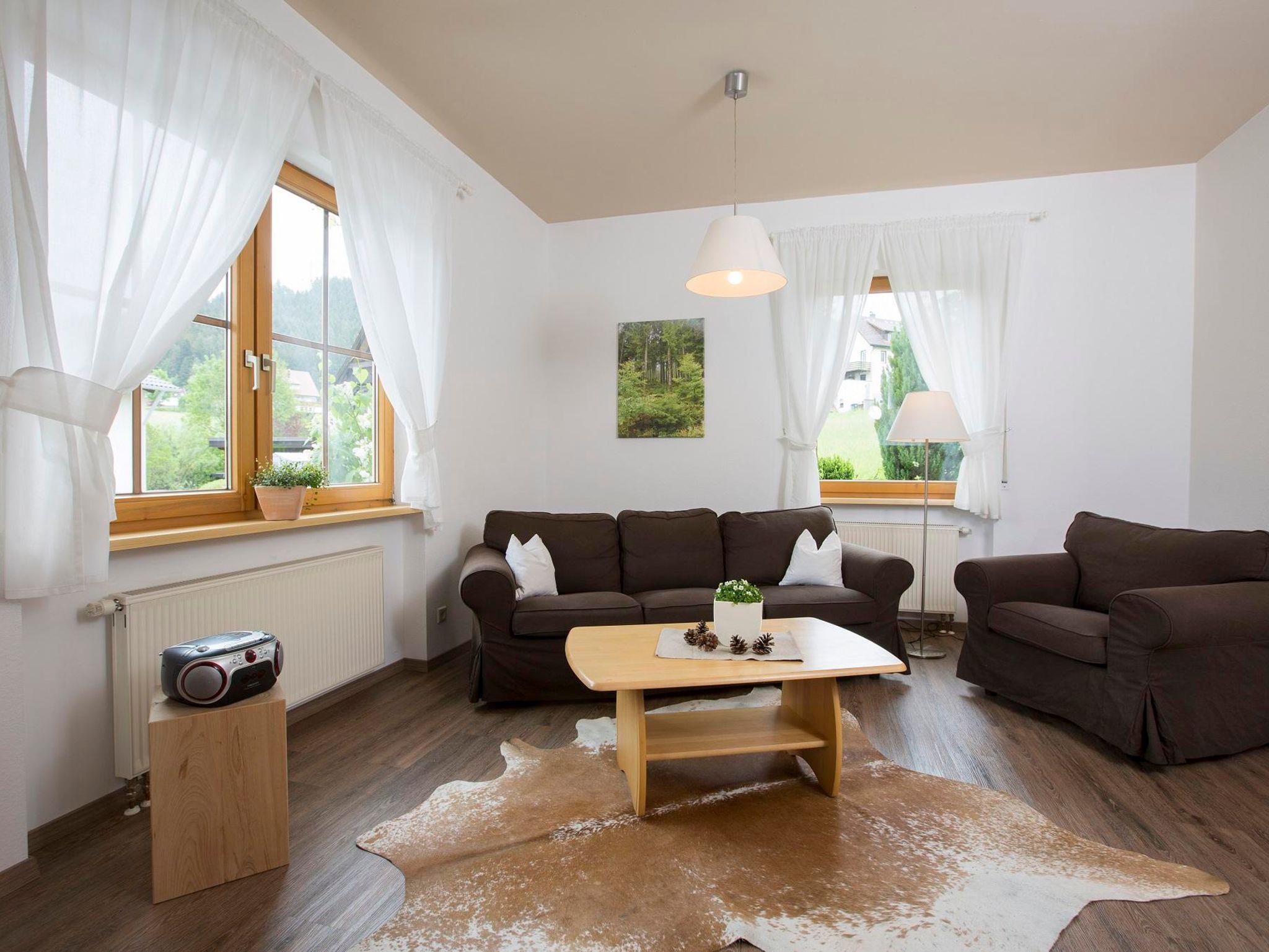 Alles steht im Zeichen der Erholung - nach einer ausgiebigen, erlebnisreichen Wanderung auf den facettenreichen Wanderwegen im Nationalpark kommt in der eleganten, in Erdtönen eingerichteten Ferienwohnung die Seele zur Ruhe. Wohnung mit Wohn/Esszimmer, Schlafzimmer, eingerichtete Küche, Bad mit Dusche/WC u. sep. WC