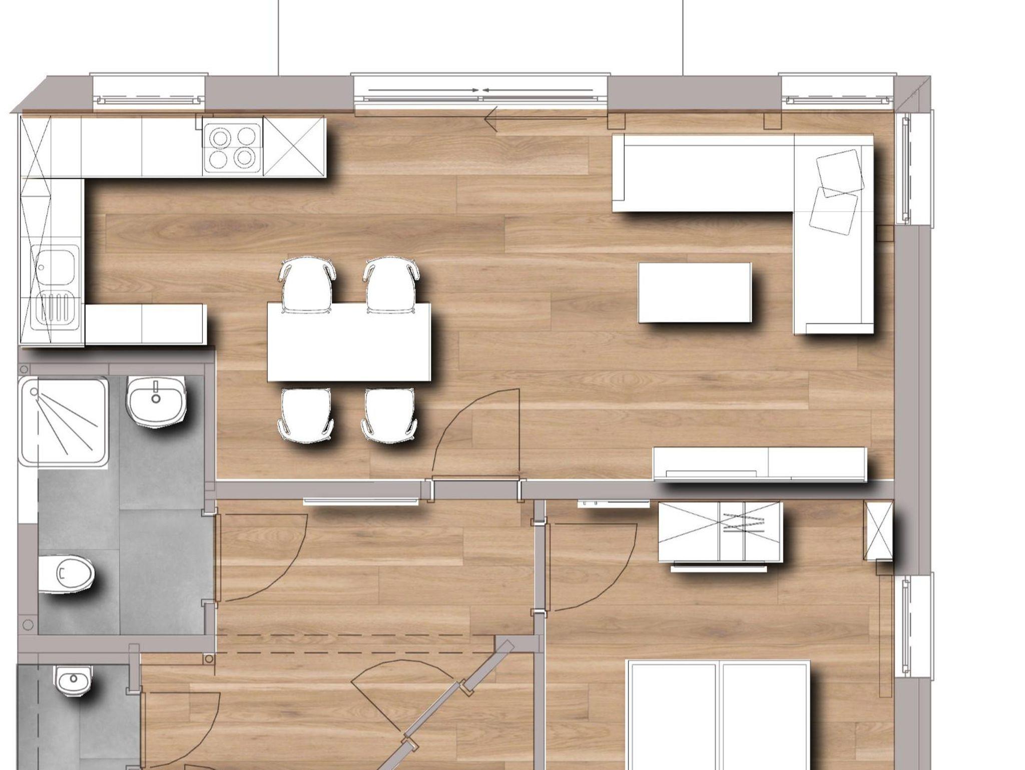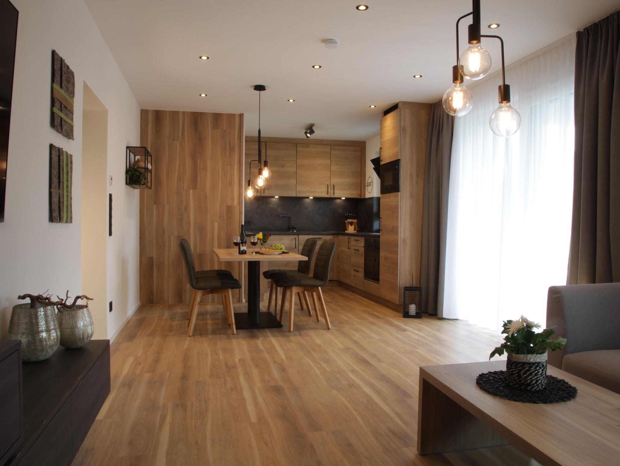 Die 60m² große Wohnung mit Fußbodenheizung ist modern und mit Wohlfühlcharakter eingerichtet. Sie besteht aus einem großen Wohn-Esszimmer, einer komplett ausgestatteten Küche, einem Schlafzimmer sowie einem Badezimmer und einem separaten WC. Das Schlafzimmer verfügt über ein 180x200 cm Doppelbett und einen zusätzlichen TV.