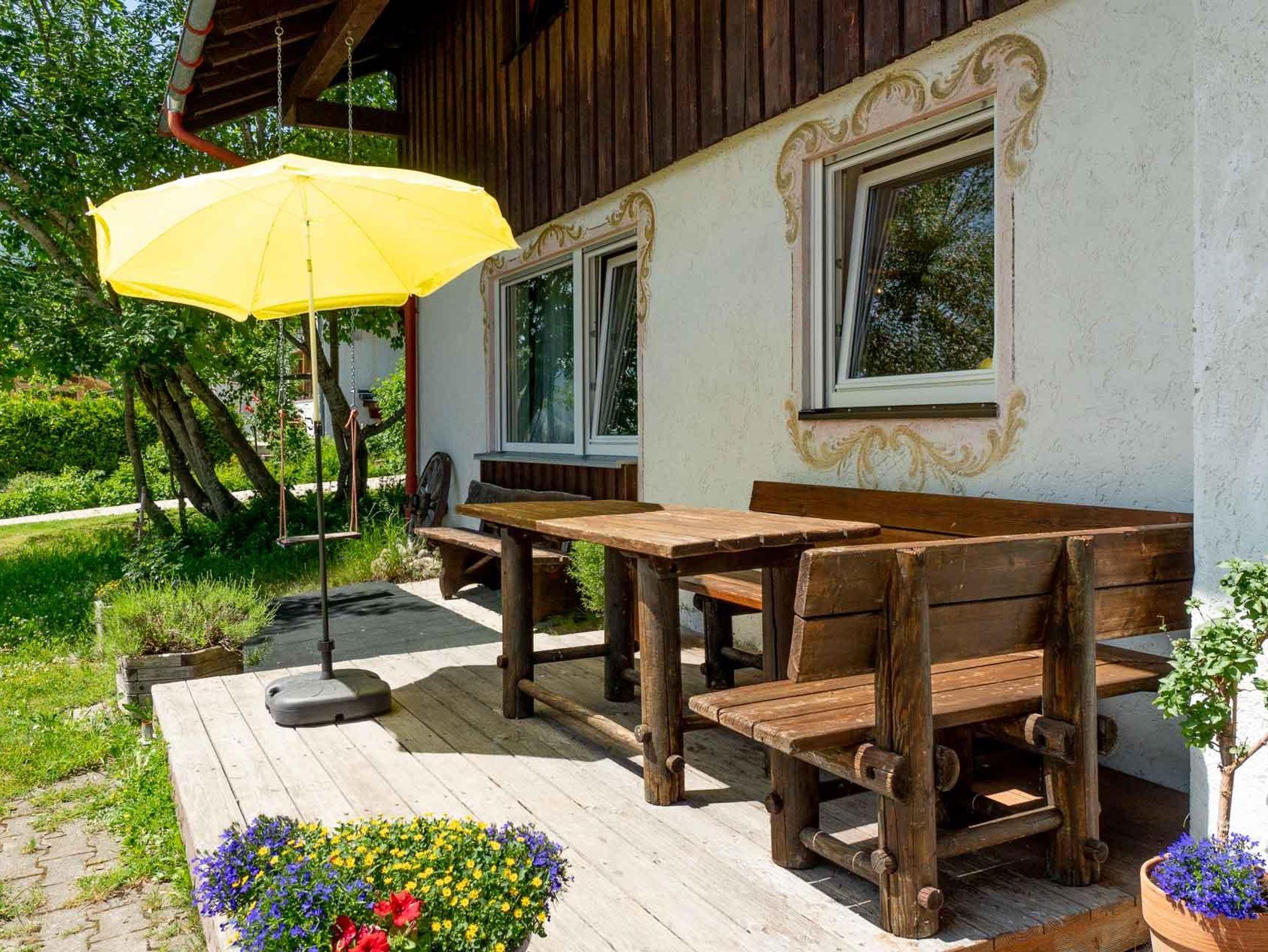 Das Haus liegt im Ortsteil Wäldle, etwa 15 Minuten zu Fuß vom Ortskern entfernt. Im Außenbereich bietet das Haus zwei wunderschöne Sitzgelegenheiten - hier können Sie die sonnigen Tage an der frischen Luft voll auskosten!