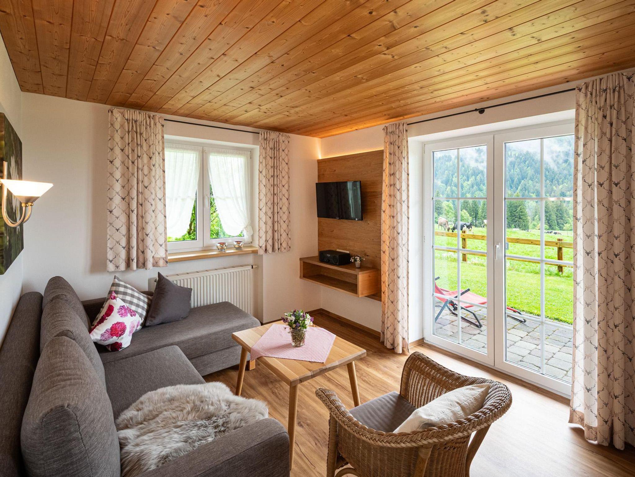 Die Kunst das Leben zu genießen. Ankommen und sich Zuhause fühlen. Stilvolle Ferienwohnungen, traumhafte Ausblicke und eine persönliche Atmosphäre machen Ihren Urlaub im Alpenrösle zu etwas ganz Besonderem. Die Ferienwohnungen sind komplett und modern ausgestattet und laden zum Wohlfühlen und Entspannen ein. In der hauseigenen Sauna mit Panoramablick und mit direktem Zugang zum Garten genießen Sie wohltuende Ruhe und pure Erholung. Zahlreiche Wander- und Spazierwege sowie die Langlaufloipe beginnen direkt am Haus. Ideal für einen schönen Ausflug mit der ganzen Familie.