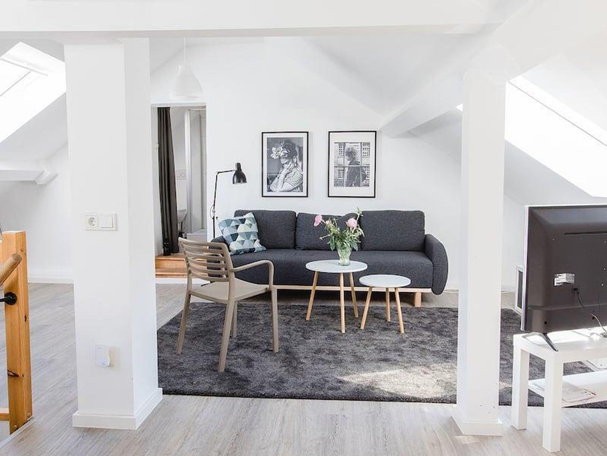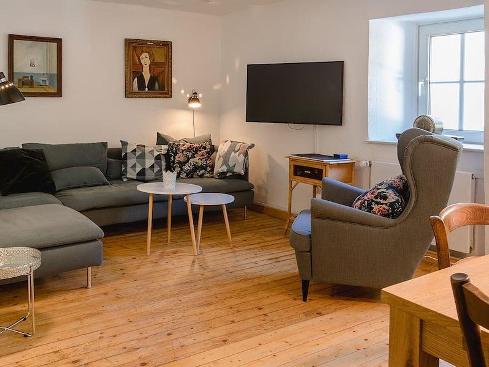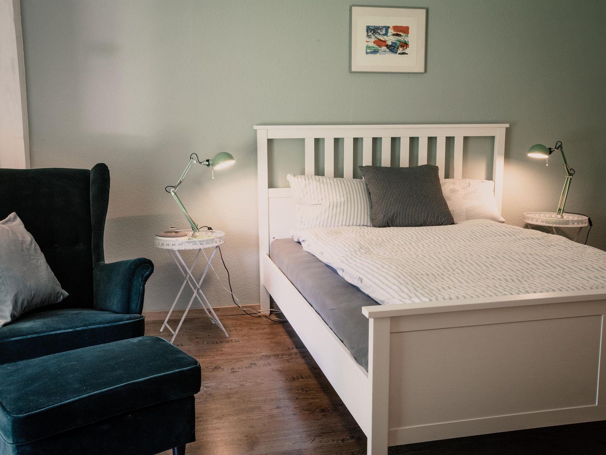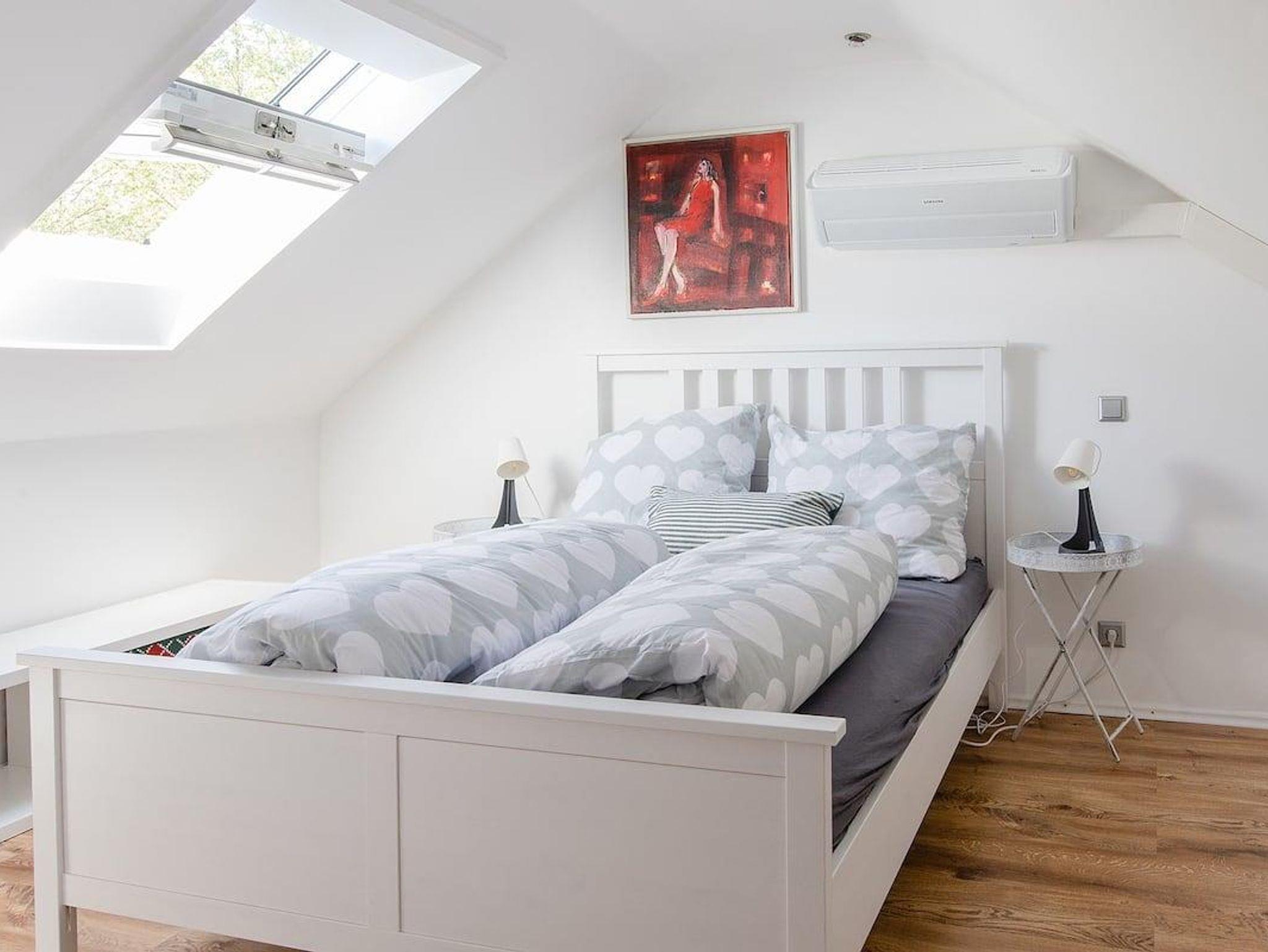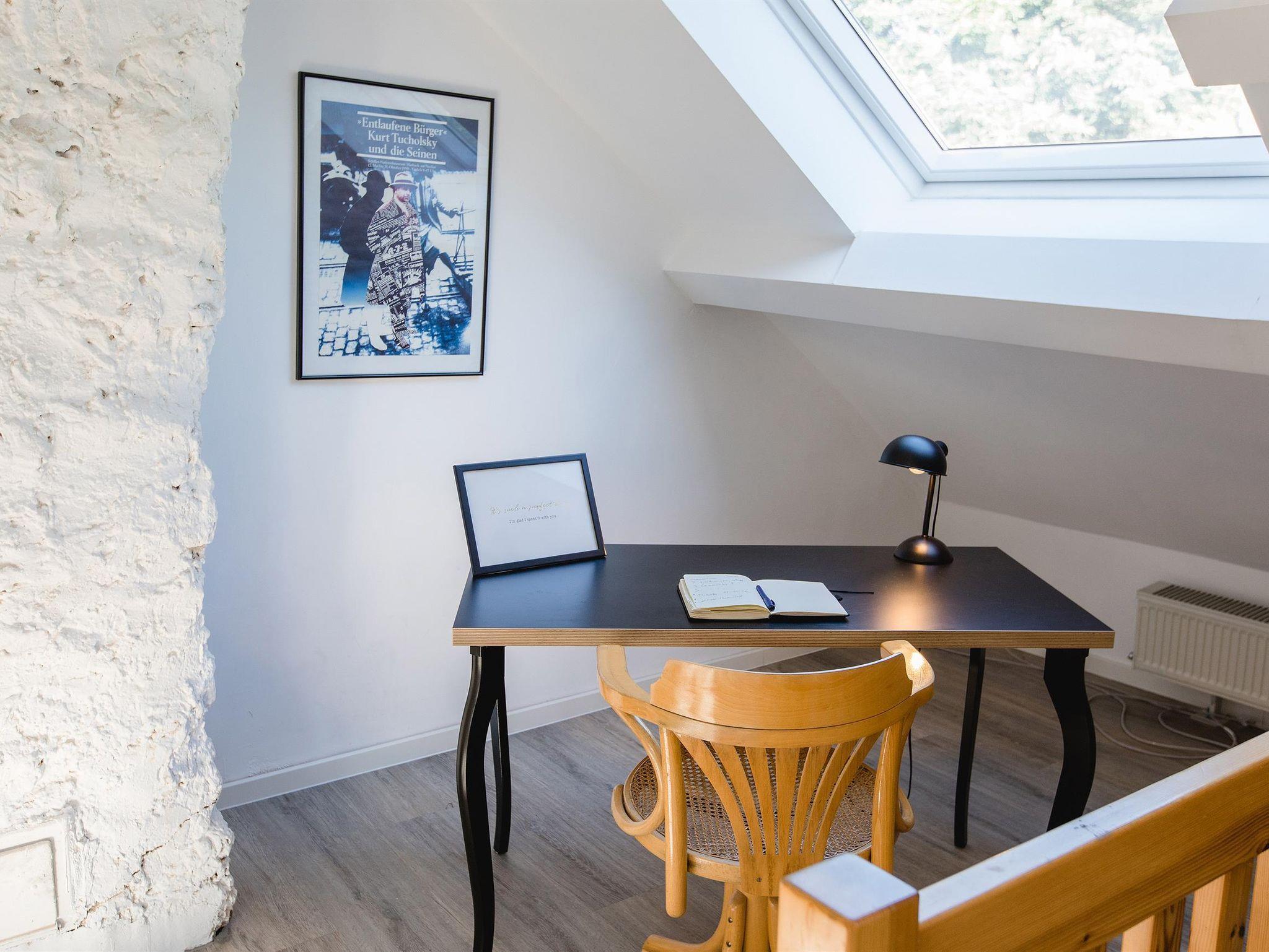 Erdgeschoss: Offene Küche (Fußbodenheizung); Esstisch für 8 Personen, Ofen, Kaffeemaschine, Backofen, Spülmaschine, Kühlschrank, 1. Schlafzimmer mit Doppelbett (Fußbodenheizung), Badezimmer mit Badewanne oder Dusche, Toilette