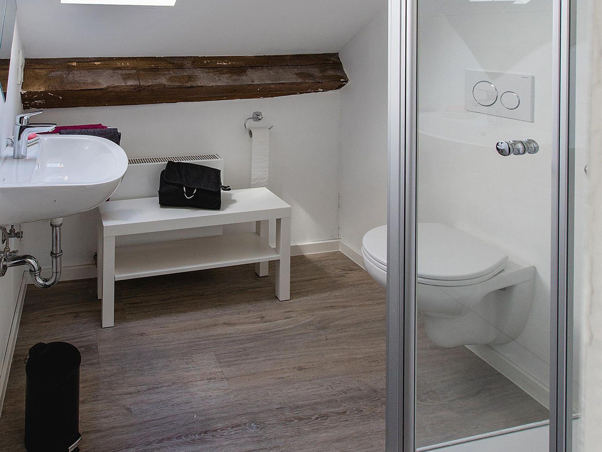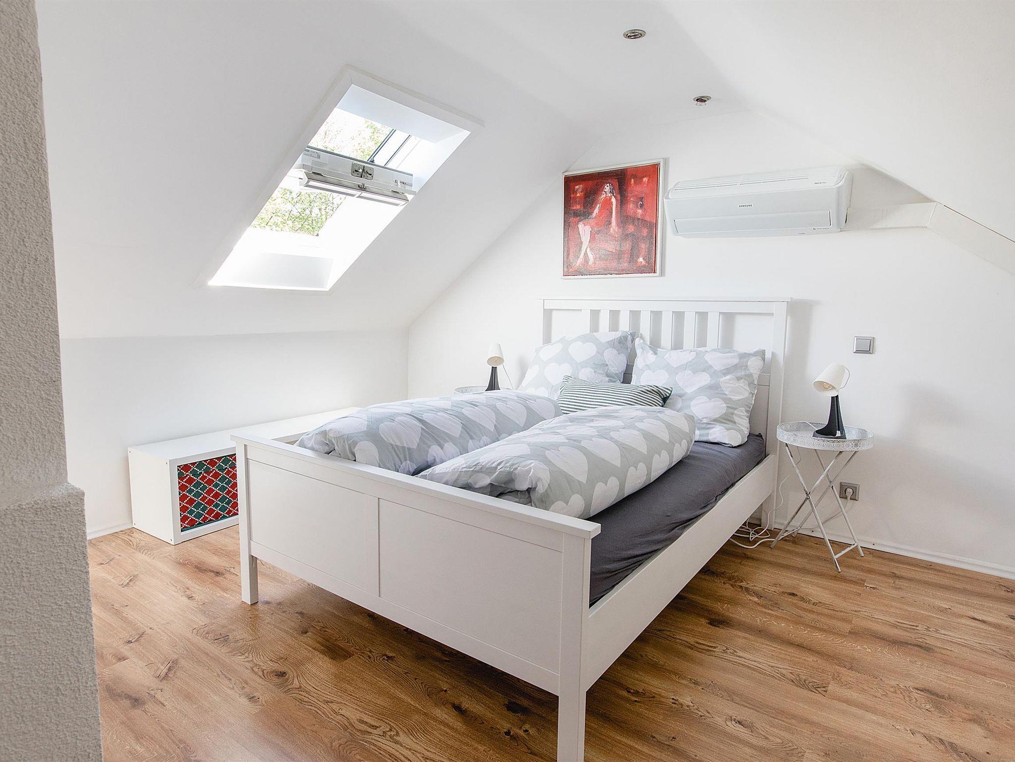 Dachgeschoss: 4. Schlafzimmer mit Doppelbett, Badezimmer mit Dusche, Waschbecken und Toilette, Doppelschlafcouch