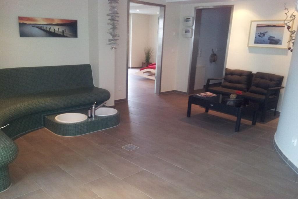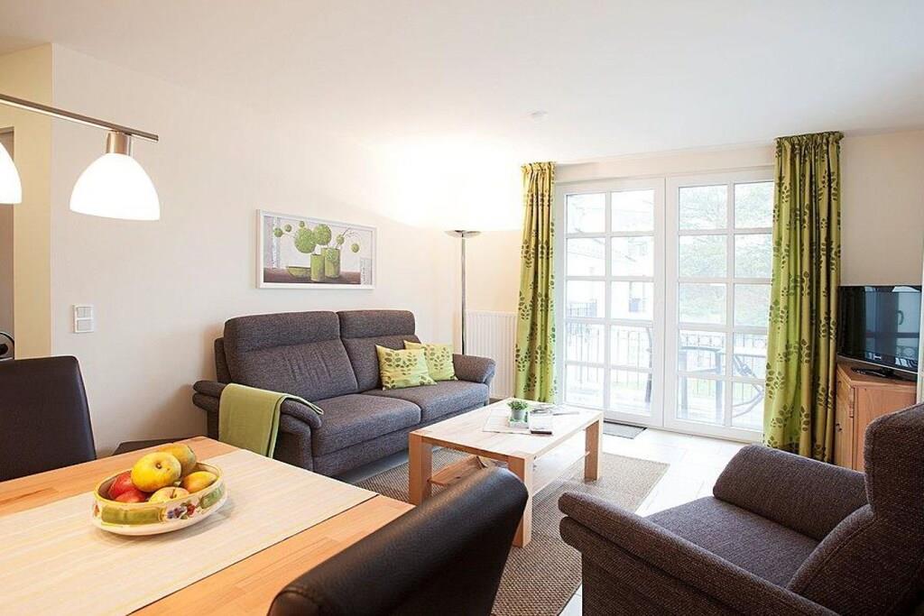 Die Residenz am Balmer See ist eine traumhaft angelegte, direkt am Achterwasser gelegene Ferienanlage. Die im Sommer 2012 errichtete Ferienvilla im Landhausstil bietet den perfekten Ort für Ihren Urlaub. Die 3-Raum Wohnung (2 Schlafzimmer,Wohnzimmer,Küche,Bad) bietet bequem Platz für 4 Personen. Ein großer Wellnessbereich mit Saunalandschaft ist mit dem Aufzug erreichbar. Über die Hausverwaltung können reservierte Parkplätze mit dazugehörigem Strandkorb direkt an der Strandpromenade in Heringsdorf gebucht werden.