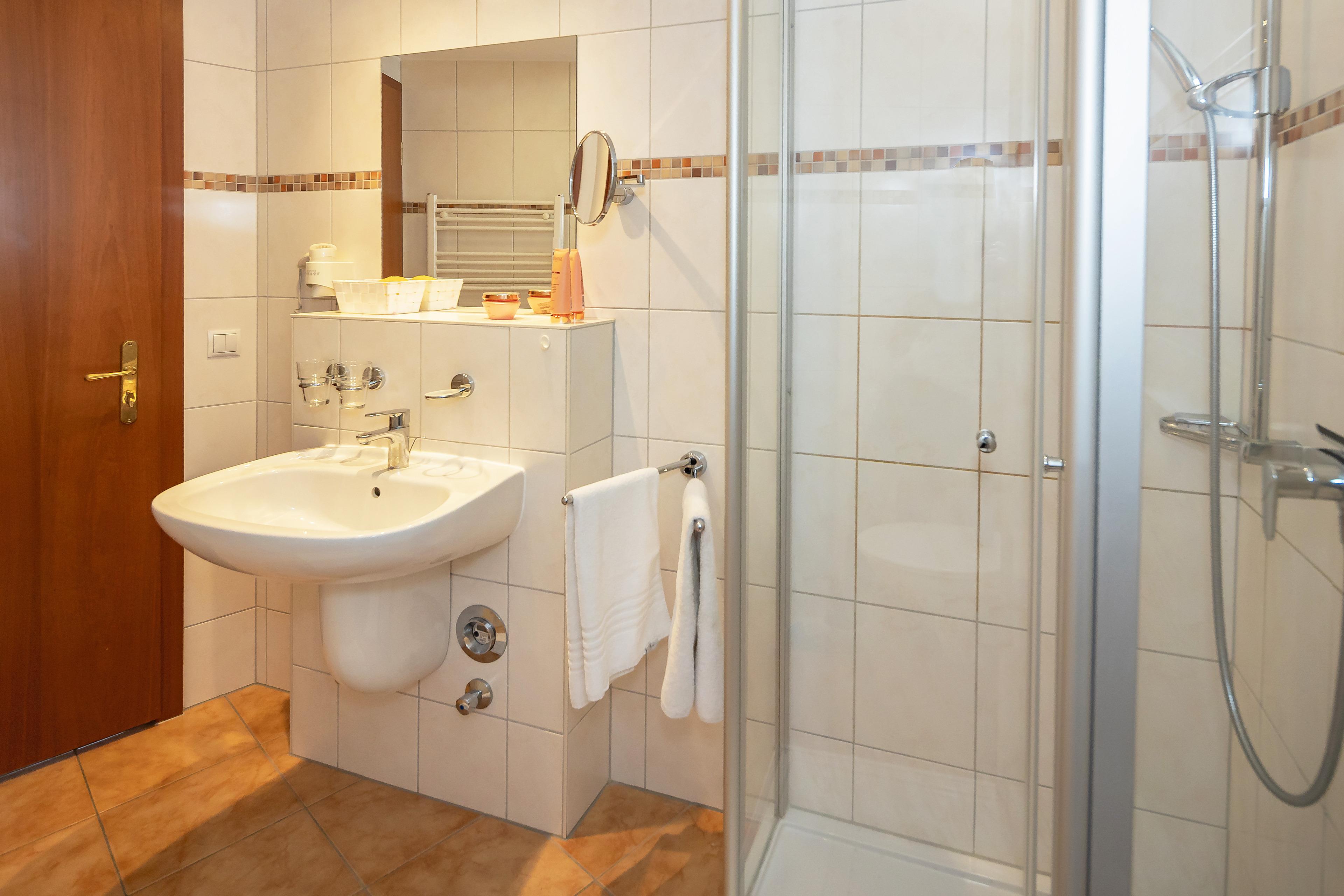 Komfortfaciliteter på badeværelset (hårtørrer, shampoo, hårbalsam, håndsæbe og brusegel)