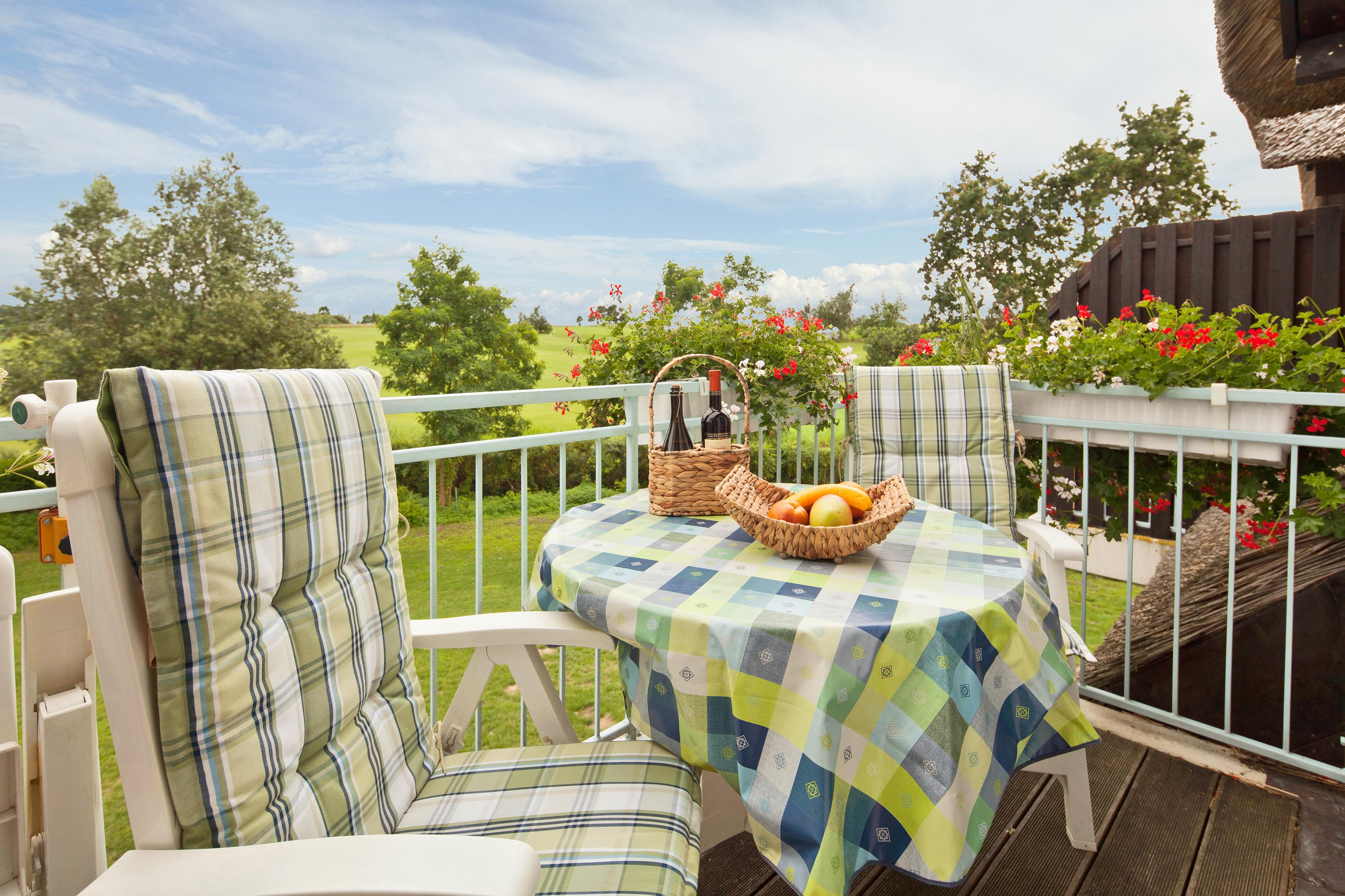 Die Ferienwohnung Nr. 494 im Reethaus" Wolgastsee" in Balm befindet sich in der sonnenreichsten Region Deutschlands. Die Ferienwohnung unter Reet direkt am Balmer See ist ca. 72 m² groß, verfügt über ein Wohn-Esszimmer mit Küchenzeile, zwei Schlafzimmer mit TV und zwei Bäder. Fußbodenheizung ist in den Bädern vorhanden. Der nach Süden ausgerichtete windgeschützte Balkon, Sonne von morgens bis abends, verleiht einen wunderschönen Blick auf die Anlage. Der Balkon ist mit 4 Stühlen, Tisch und Sonnenschirm bestückt.