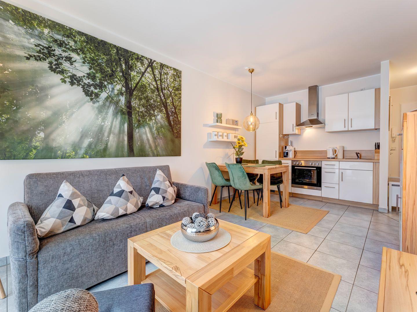 Die kürzlich (2024) renovierte und modernisierte Ferienwohnung (WLAN, Smart-TV, DVD-Player, Bluetooth-DAB+ Radio etc.) mit gemütlicher Wohn-/Essecke und separatem Schlafzimmer bietet Platz für insgesamt 4 Personen.