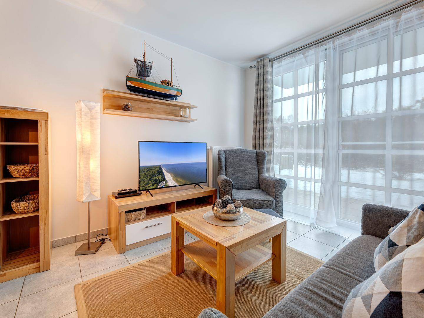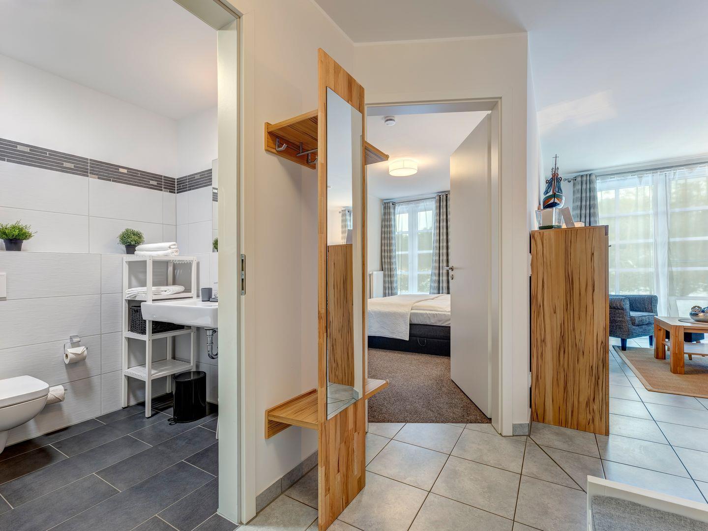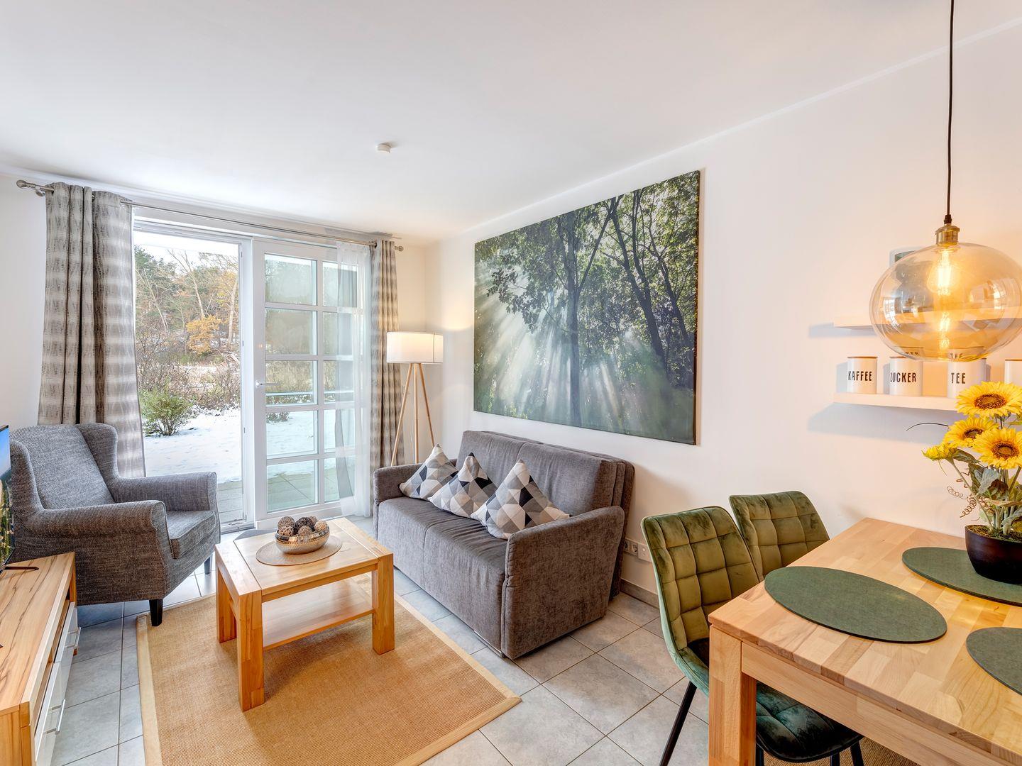 Genießen Sie Ihren Aufenthalt in der kleinen Ruheoase im Erdgeschoss mit direktem Blick ins Grüne oder auf das Achterwasser, wo sie Sie in dem zur Wohnung gehörigen Strandkorb auf der Terrasse noch den Klängen der unberührten Natur lauschen können.
