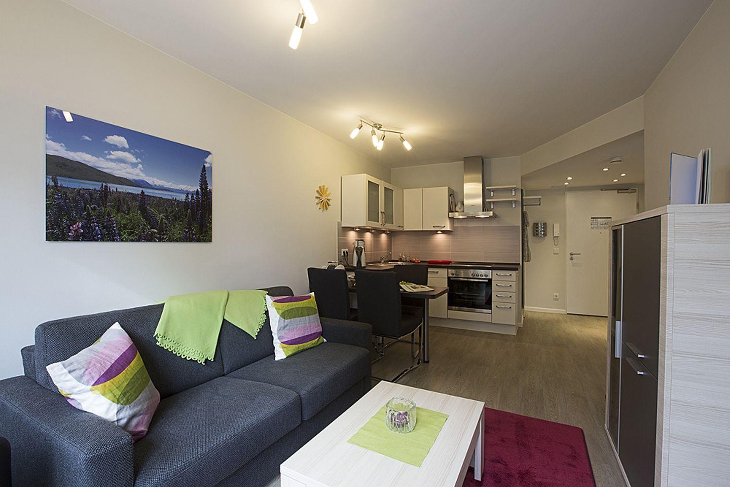 Die Wohnung bietet ein vollwertiges Schlafzimmer und ein Schlafsofa im Wohnbereich. Im Haus erwartet Sie ein Wellnessbereich mit 3 Saunen – die ideale Ergänzung für Entspannung nach einem erlebnisreichen Tag am Balmer See.