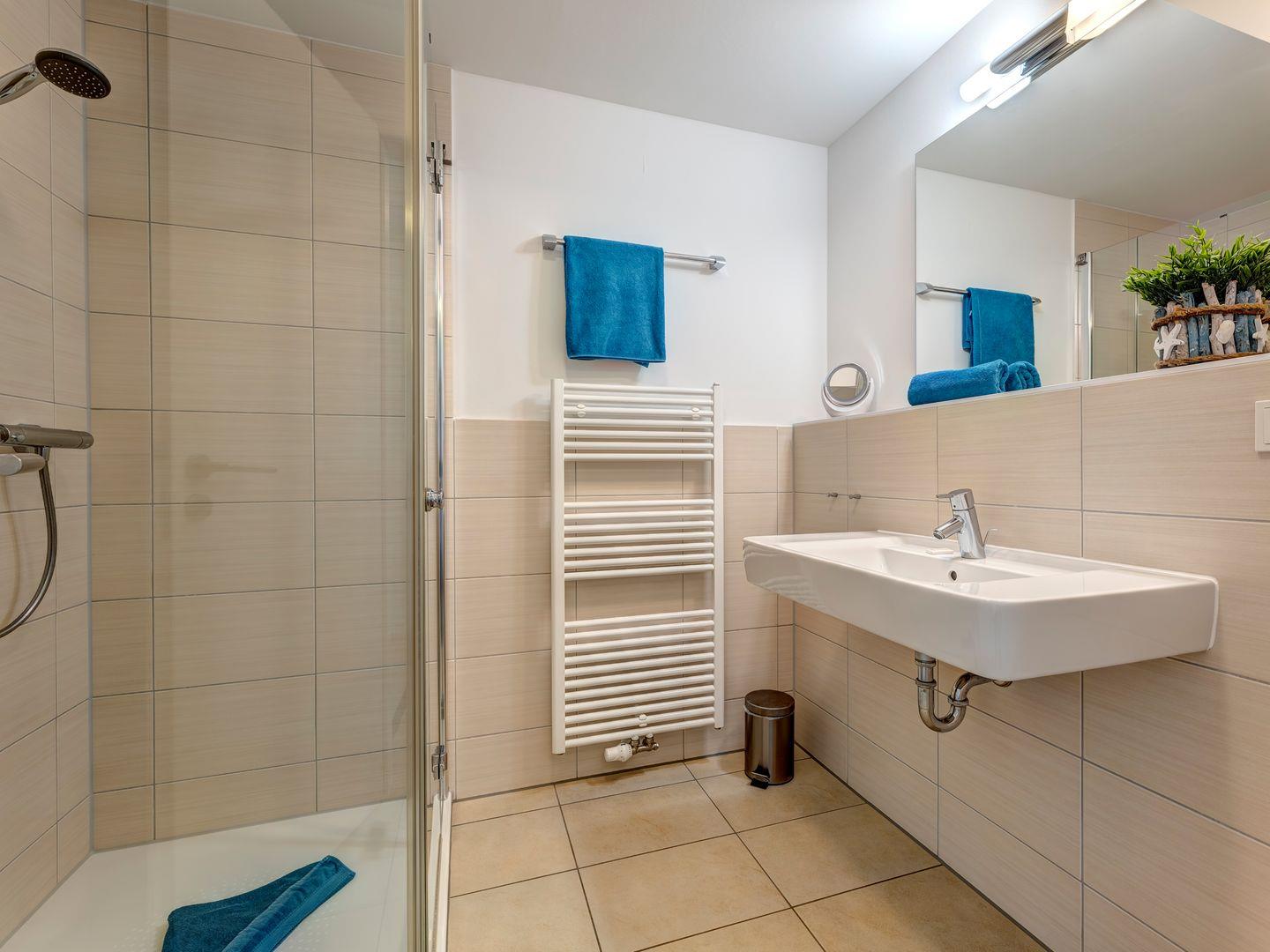 Das Schlafzimmer erwartet Sie mit einem behaglichen Doppelbett und einem großzügigen Kleiderschrank – Ihr persönlicher Rückzugsort für erholsame Nächte. Das moderne Badezimmer, mit Fußbodenheizung, überzeugt mit einer geräumigen Dusche, die Ihre Erholung perfekt abrundet.