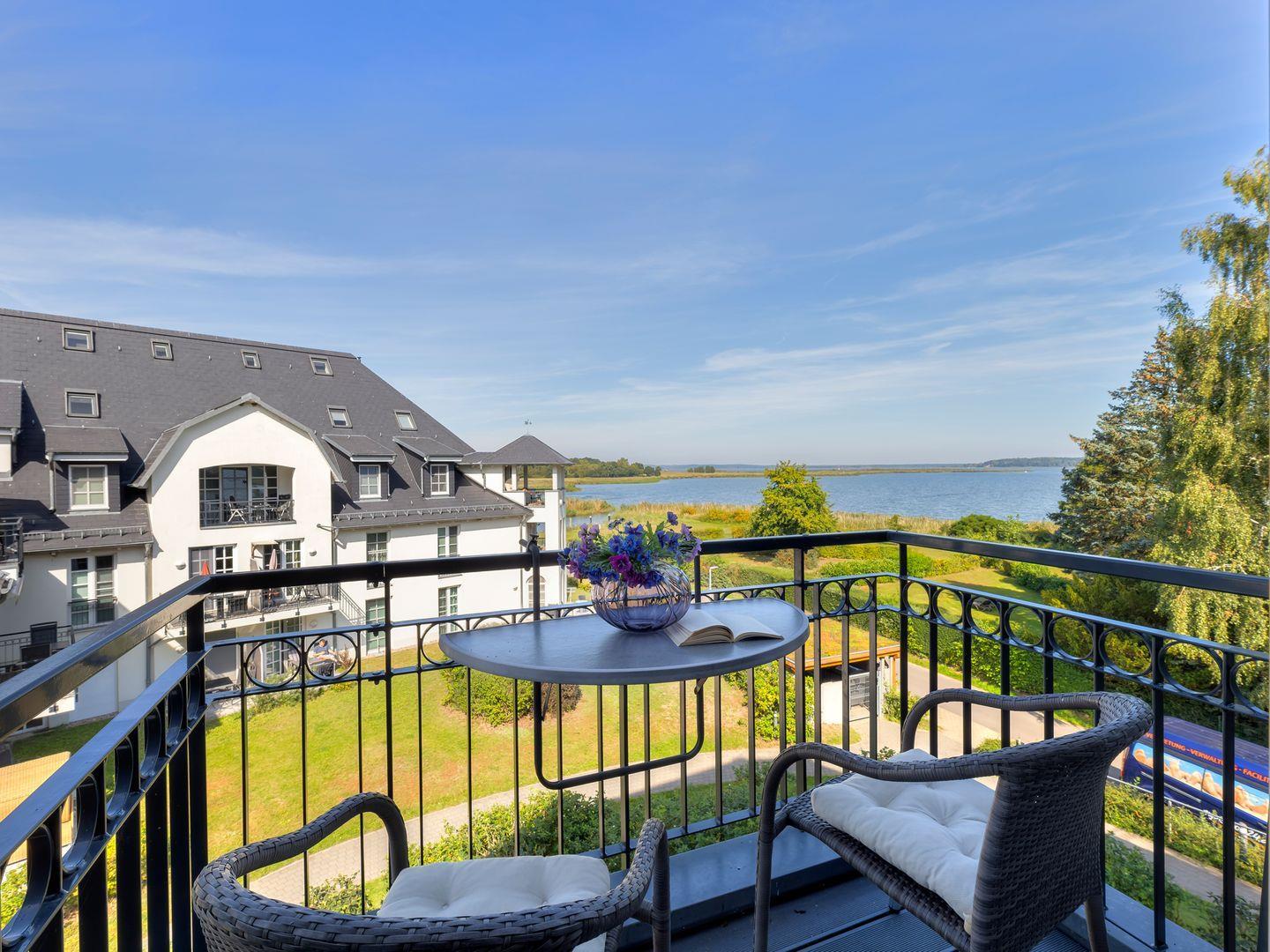 Unser mit 5 DTV-Sternen zertifiziertes Appartement bietet die perfekte Kulisse für einen erholsamen Urlaub. Ideal für zwei Personen und ein Kleinkind bis 3 Jahren, verspricht diese 56 qm große Wohnung eine einzigartige Erfahrung. Zwei Balkone bieten nicht nur eine beeindruckende Aussicht auf das Achterwasser, sondern auch einen Blick auf die reizvolle Anlage der Residenz.