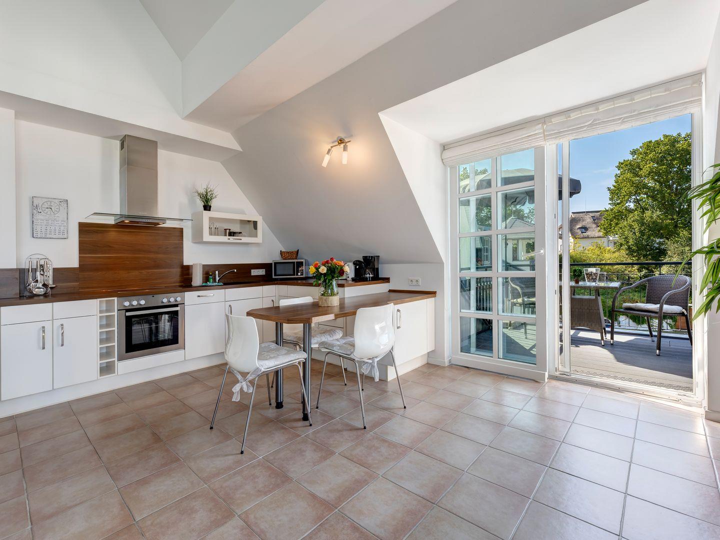 Der besondere Charme des Appartements liegt im offenen Giebel des Wohnbereichs, der das gesamte Ambiente mit natürlichem Licht durchflutet. Die freundliche und hochwertige Einrichtung in modernen Farbtönen sorgt für eine Wohlfühlgarantie, die jeden Urlauber begeistert.
