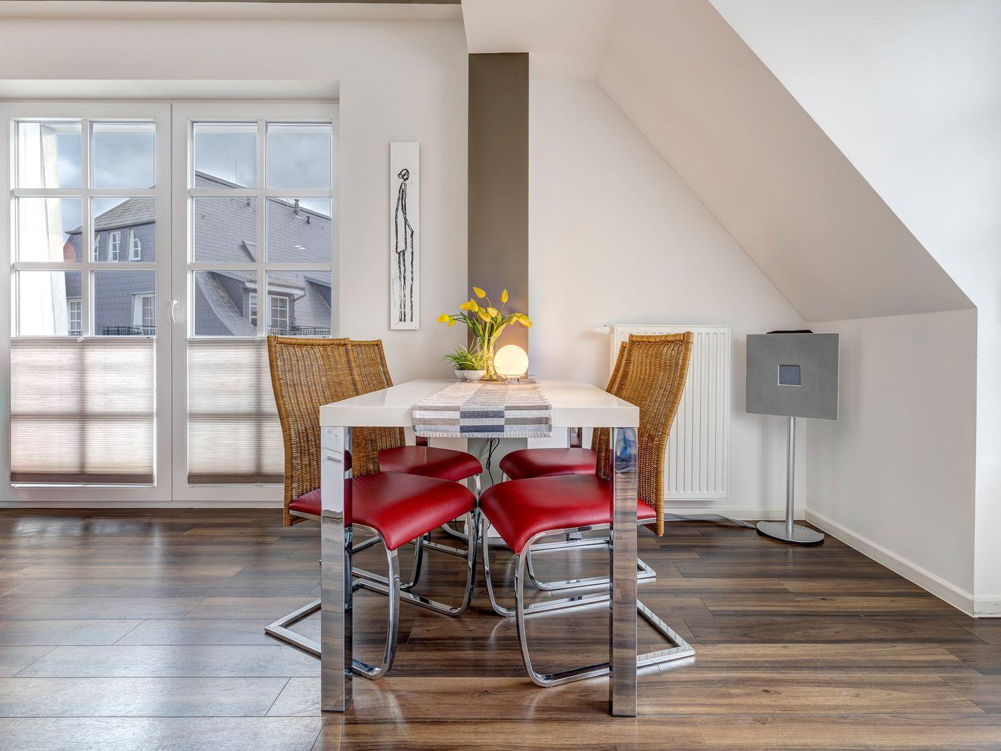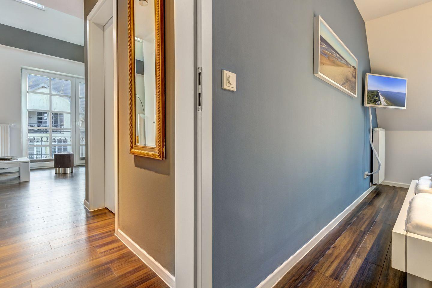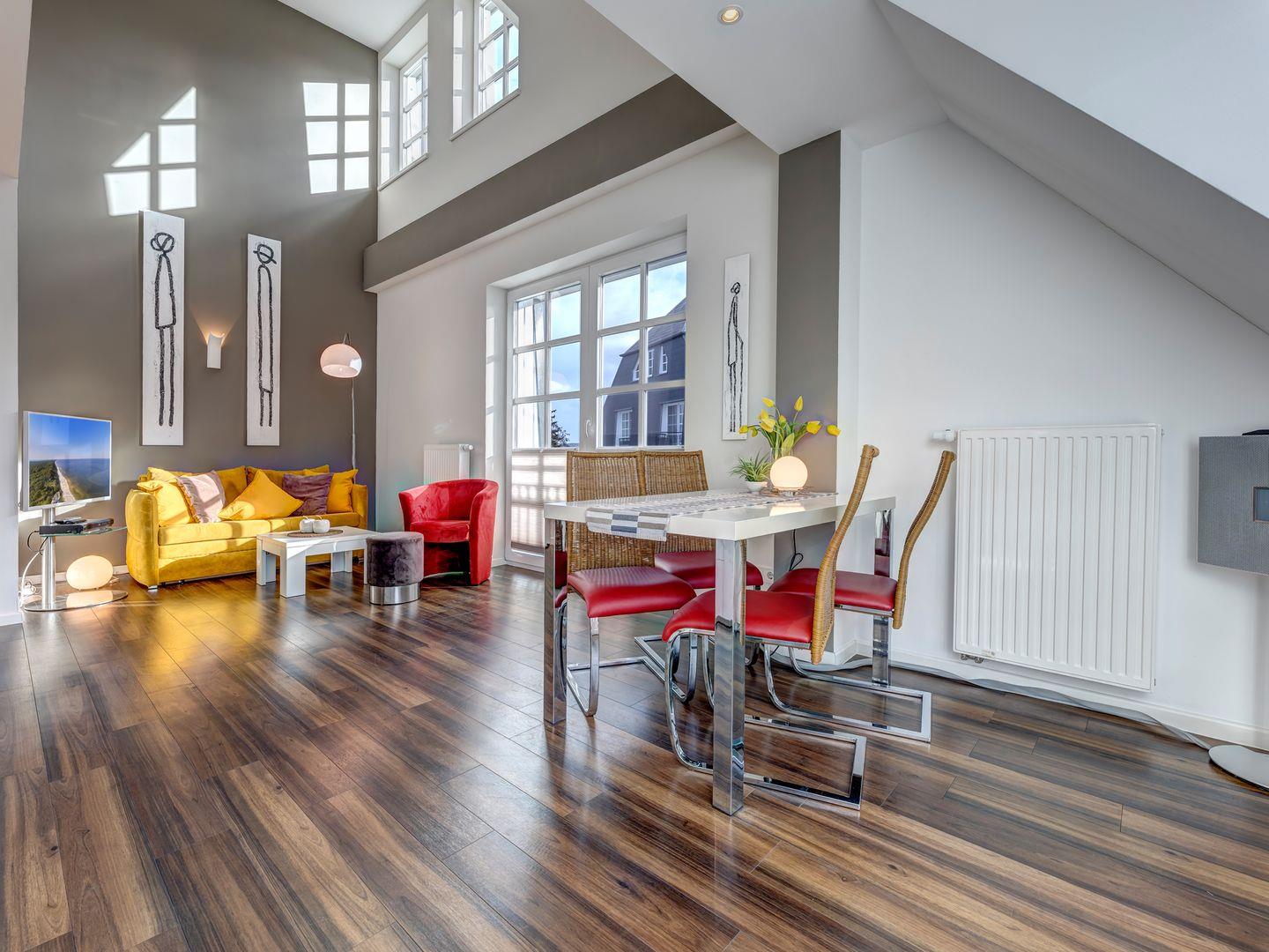 Wir freuen uns, Sie in unserem mit 5-DTV-Sternen zertifizierten Refugium mitten im Naturschutzgebiet begrüßen zu dürfen. Ihr Aufenthalt in unserer exklusiven zwei Zimmer Wohnung auf 50 m² verspricht unvergessliche Urlaubseindrücke zu jeder Jahreszeit. Die ruhige Lage im Dachgeschoss, bequem erreichbar per Fahrstuhl im zweiten Obergeschoss, bietet eine einzigartige Atmosphäre. Die Ferienwohnung befindet sich am südöstlichen Ende des Gebäudes und besticht durch ihre moderne und komfortable Ausstattung.
