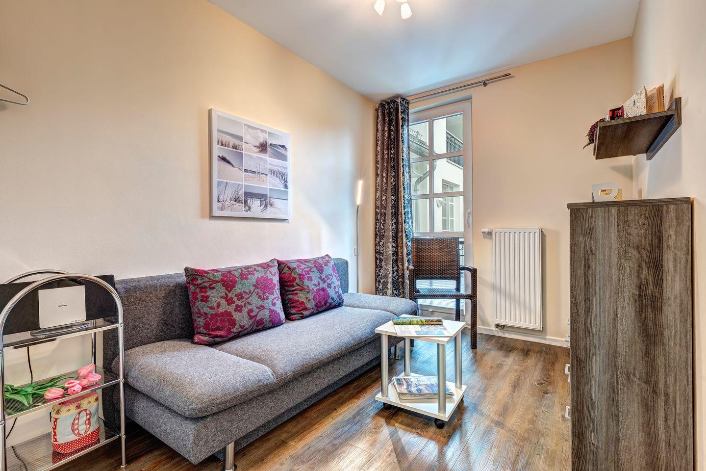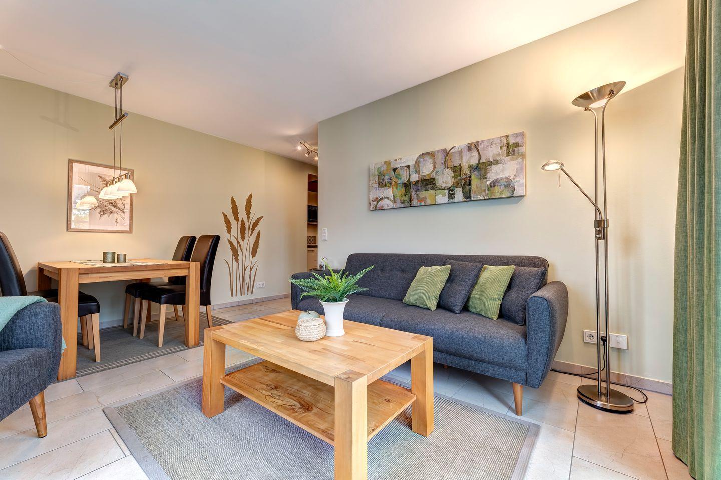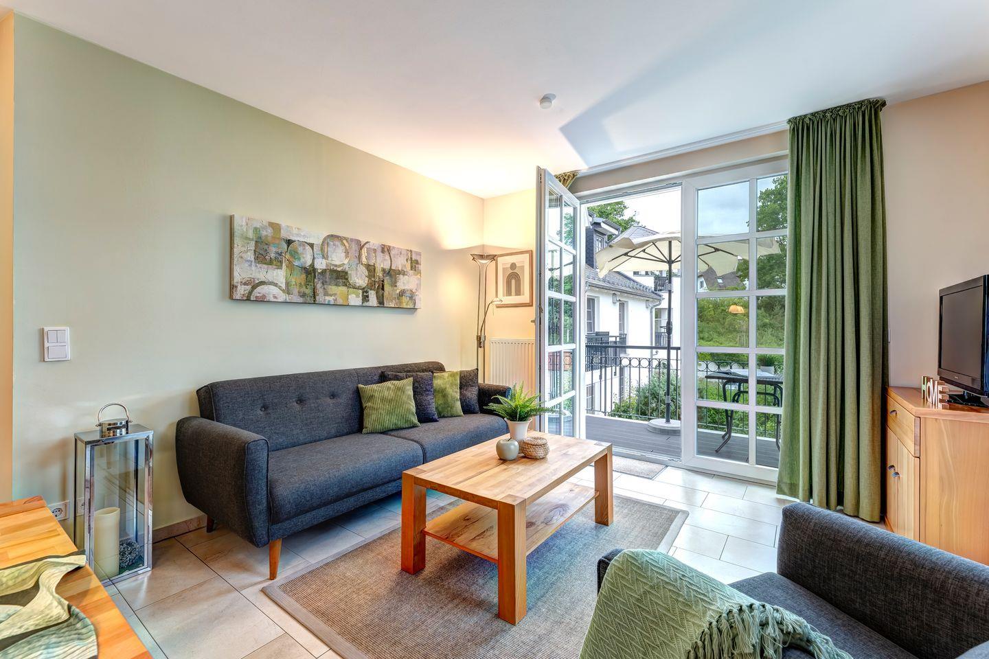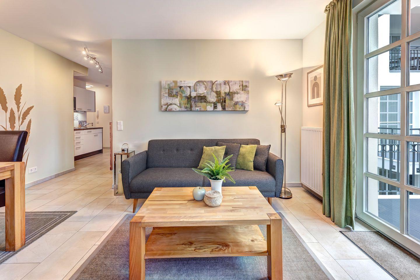 Unsere 57 qm große 3-Raum-Wohnung mit 4 DTV-Sternen bietet ein großes Wohn- und Esszimmer, ein gemütliches Schlafzimmer und einen geräumigen Balkon.