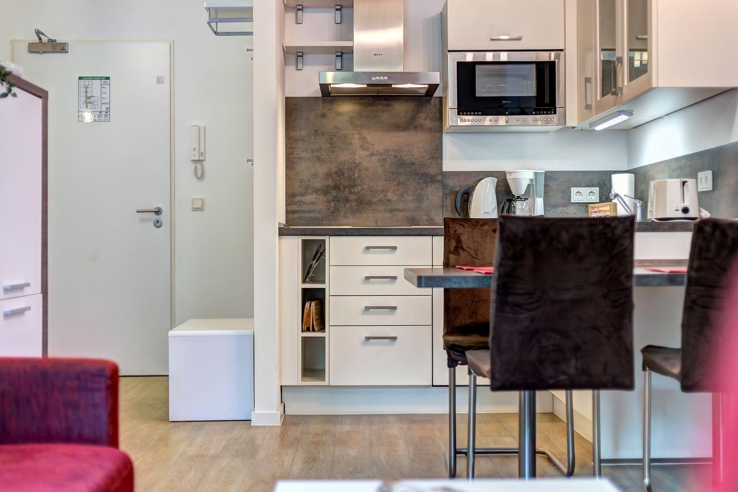 Die integrierte Küche ist voll ausgestattet, sodass Sie Ihren Aufenthalt nach eigenen Wünschen gestalten können.