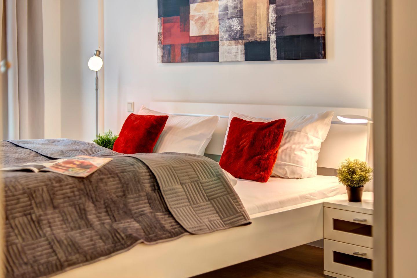 Für eine erholsame Nachtruhe sorgt das Schlafzimmer mit einem komfortablen Doppelbett.