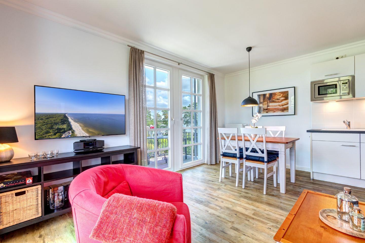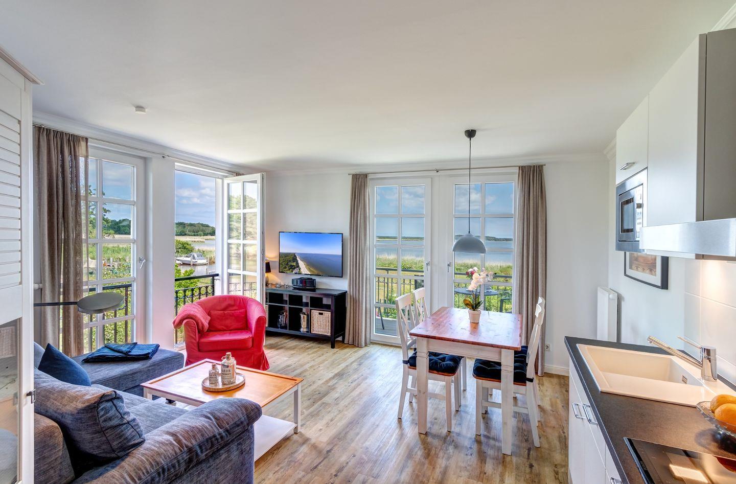 Herzlich willkommen in der idyllischen Residenz am Balmer See, BS52! Erleben Sie eine 2-Raum-Wohnung mit vollwertigem Schlafzimmer und einem Wohnbereich, der sich zu einem sonnigen Balkon mit traumhaften Blick auf das Achterwasser öffnet. Ideal für zwei Personen und ein Kleinkind.